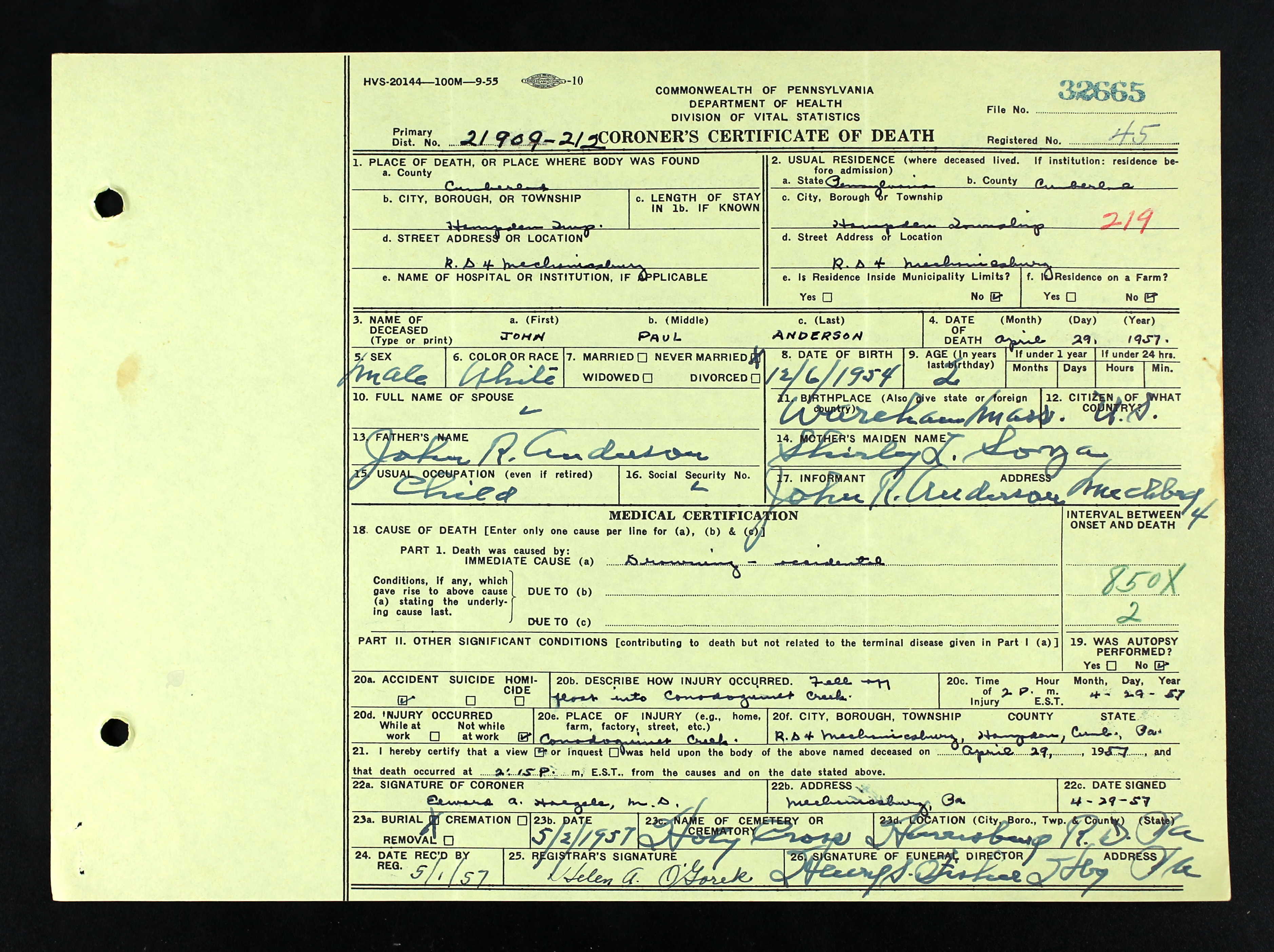 238. Pennsylvania Death Certificates, Pennsylvania Death Certificates, 1906-1967, 1957, 030601-033450.
