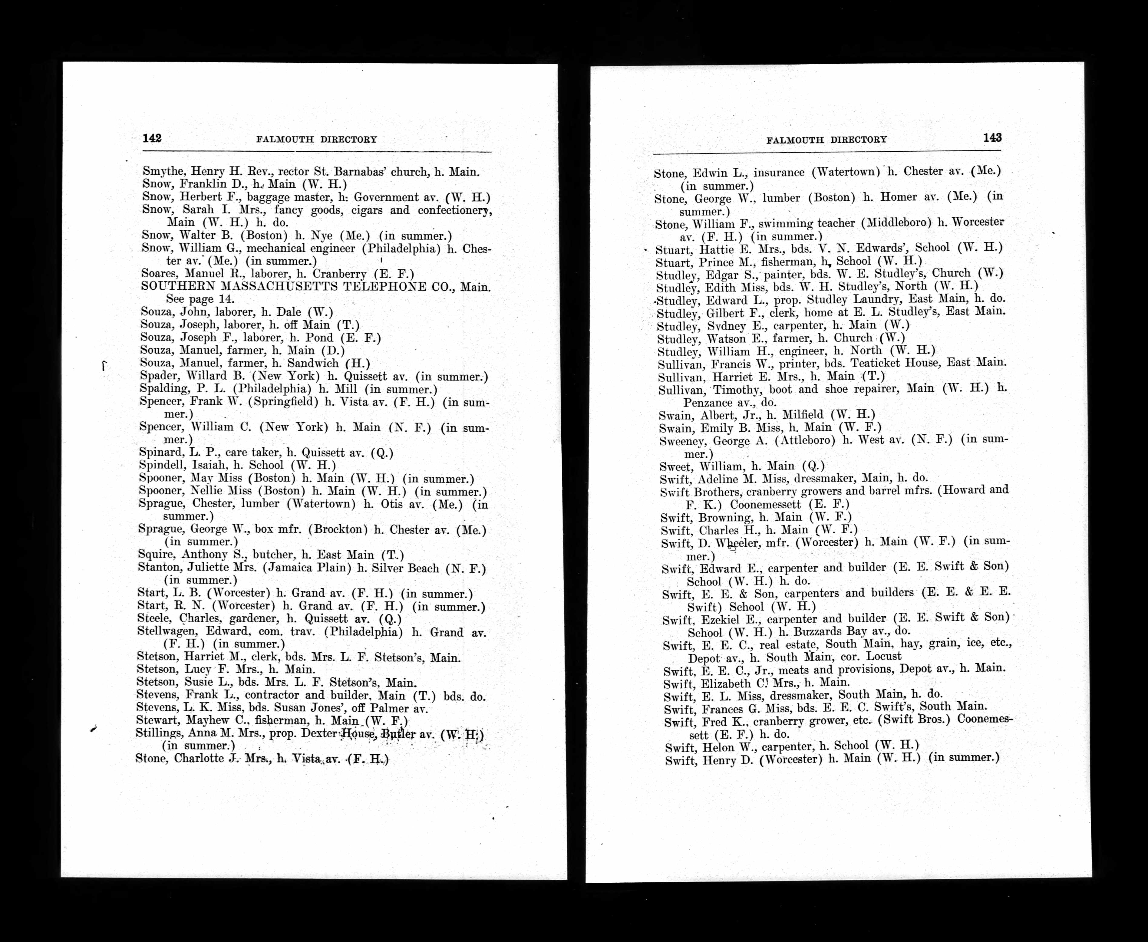22. 1920 Massachusetts Census, Barnstable, Falmouth, ED12, Sht 3B.