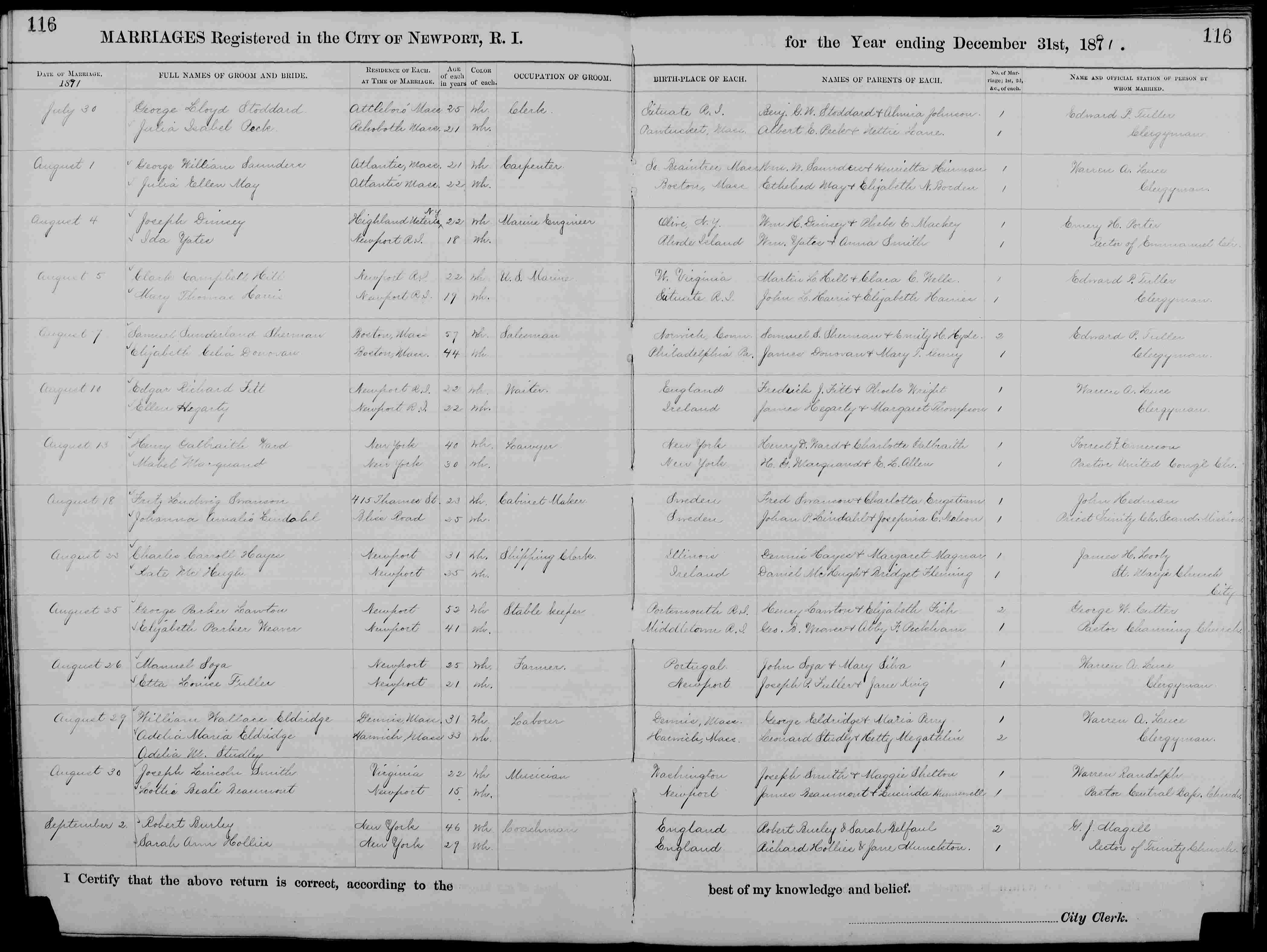Marriage Place:Newport, Newport, Rhode Island