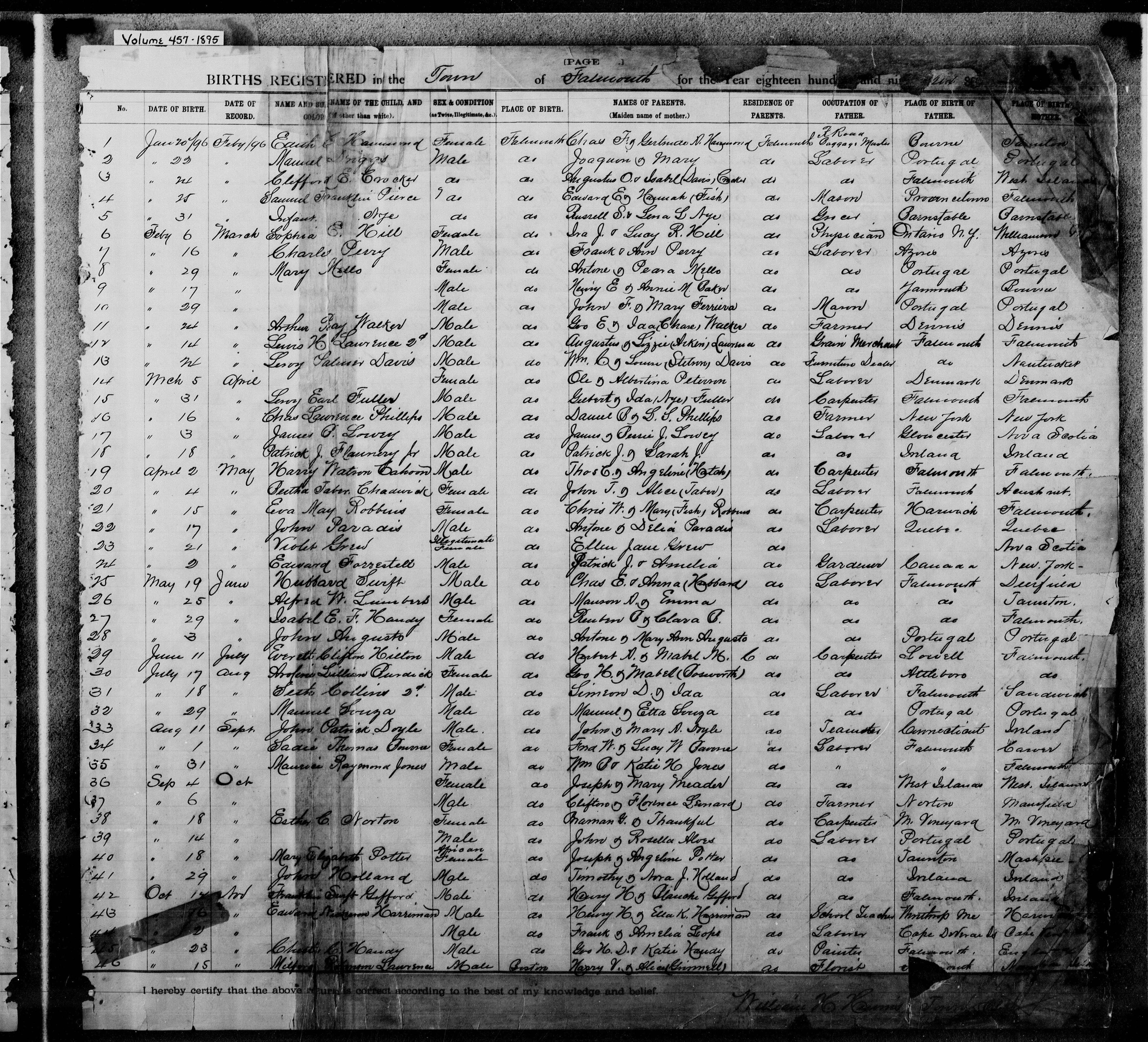 24. 1900 Massachusetts Census, Barnstable, Falmouth TWP, ED 9, Sht 34B.
