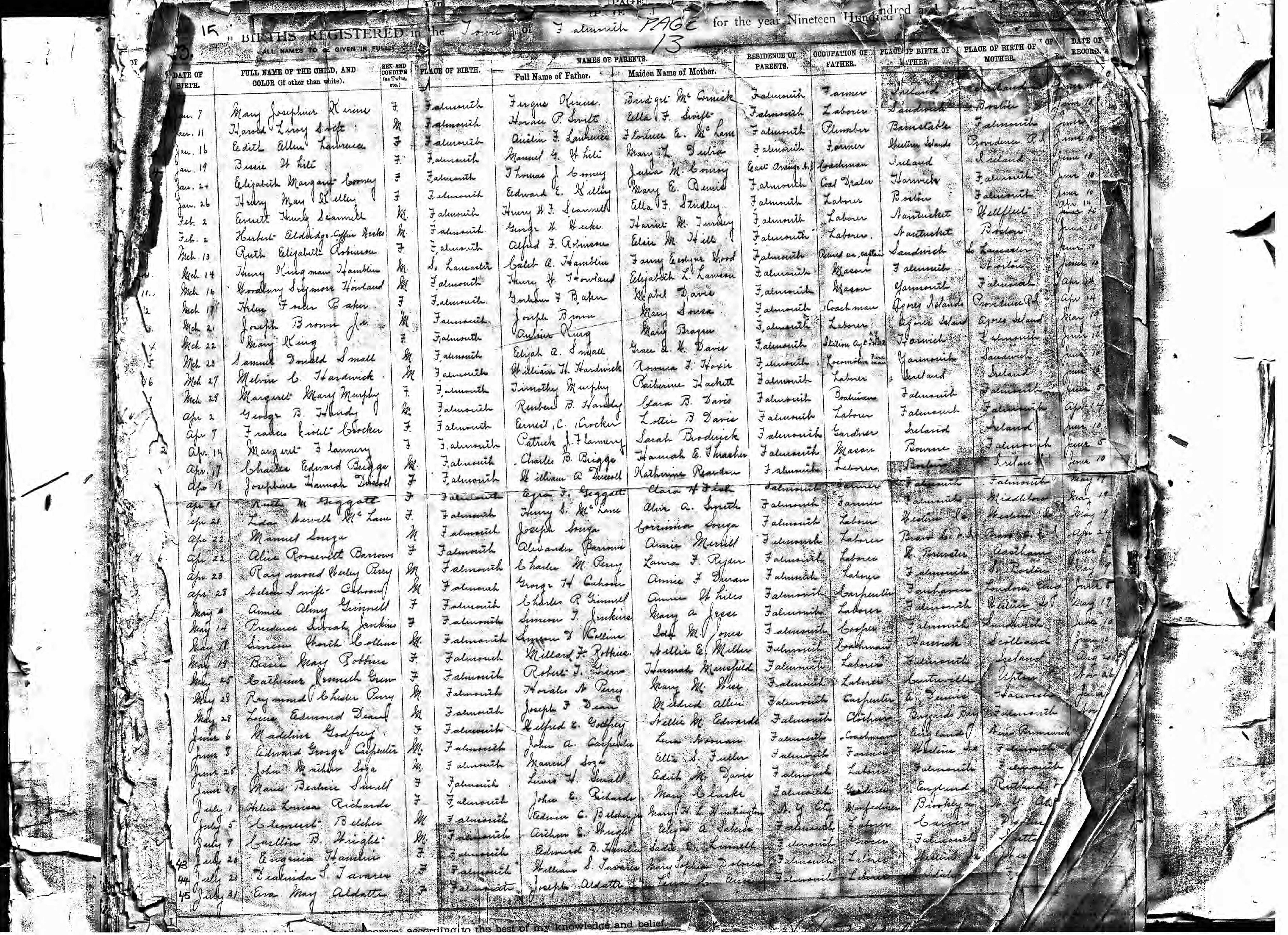 202. 1930 Massachusetts Census, Barnstable, Falmouth Township, ED 11, Sht 13B.