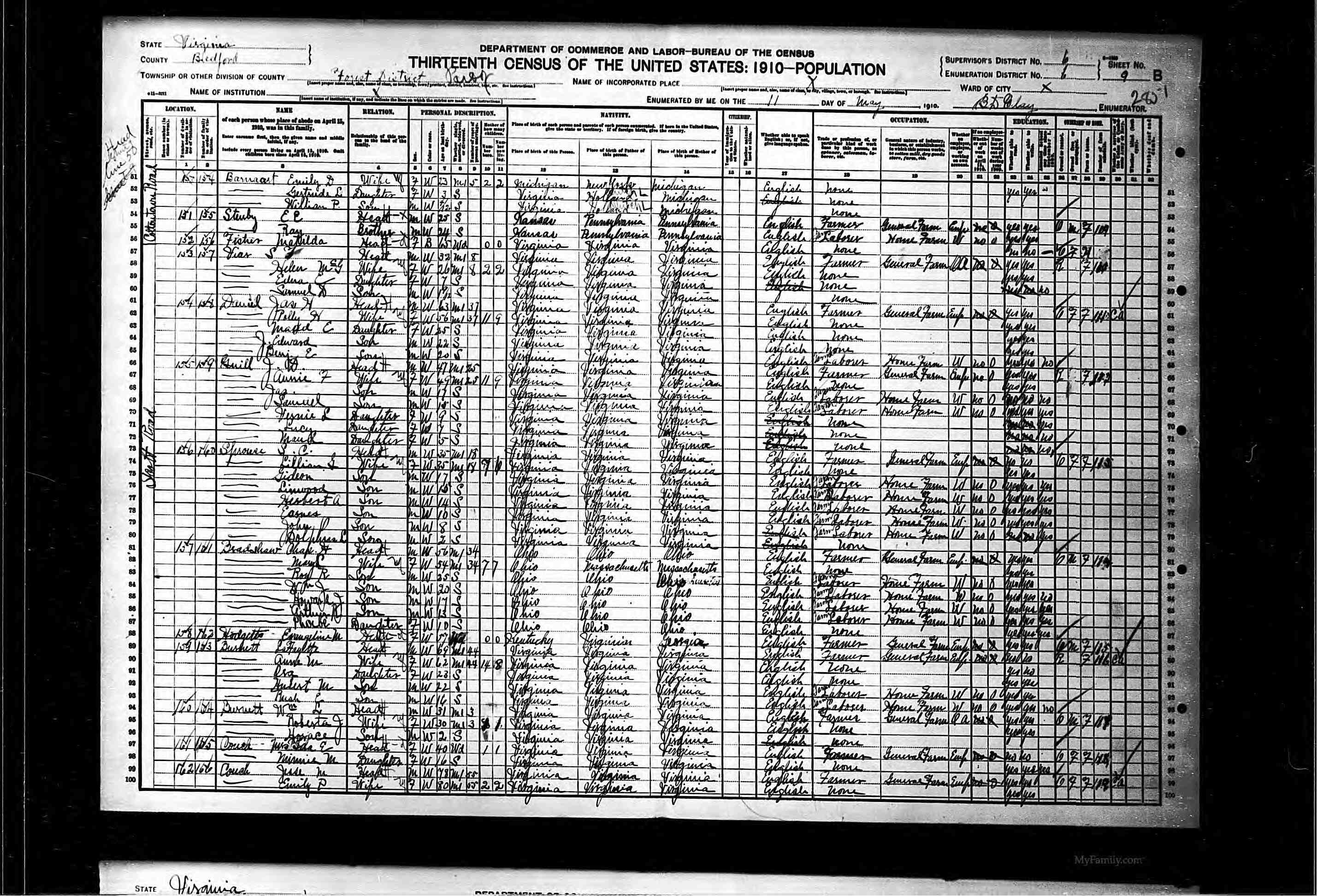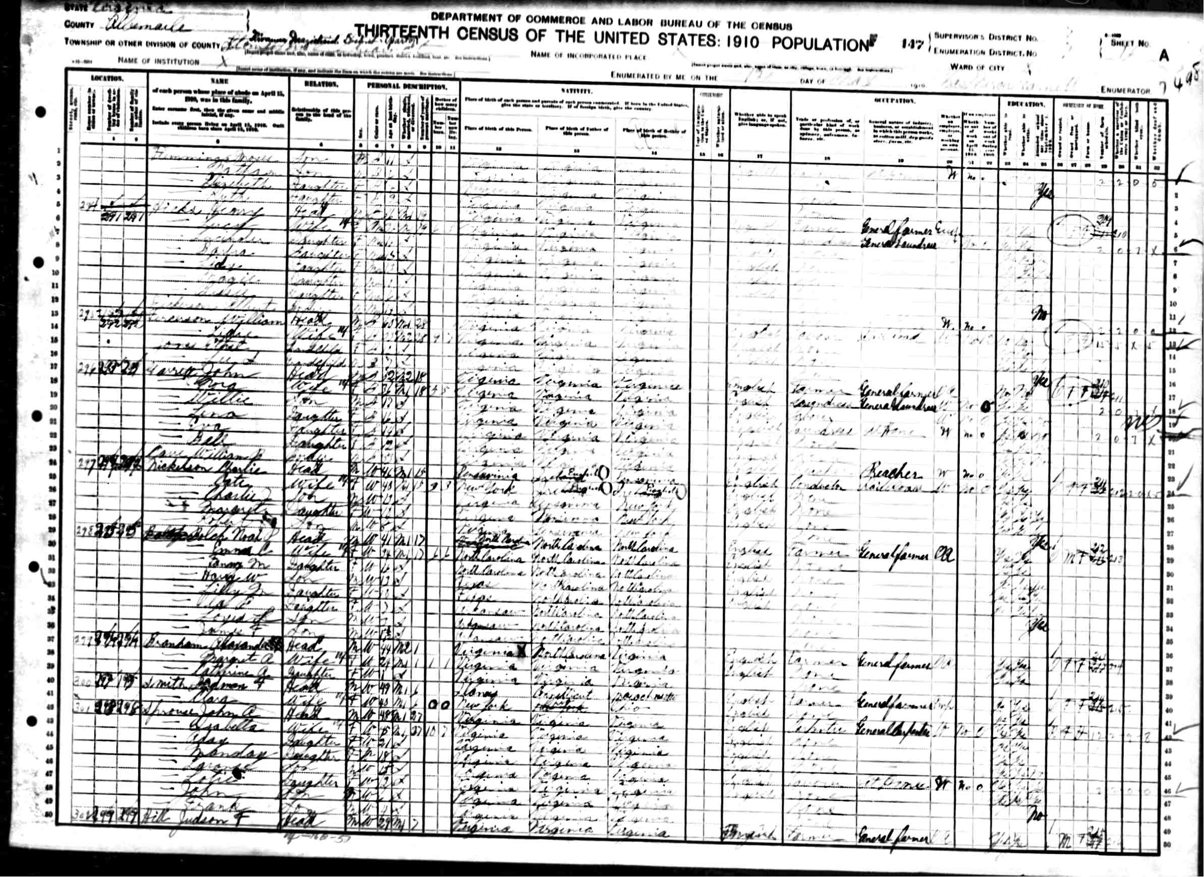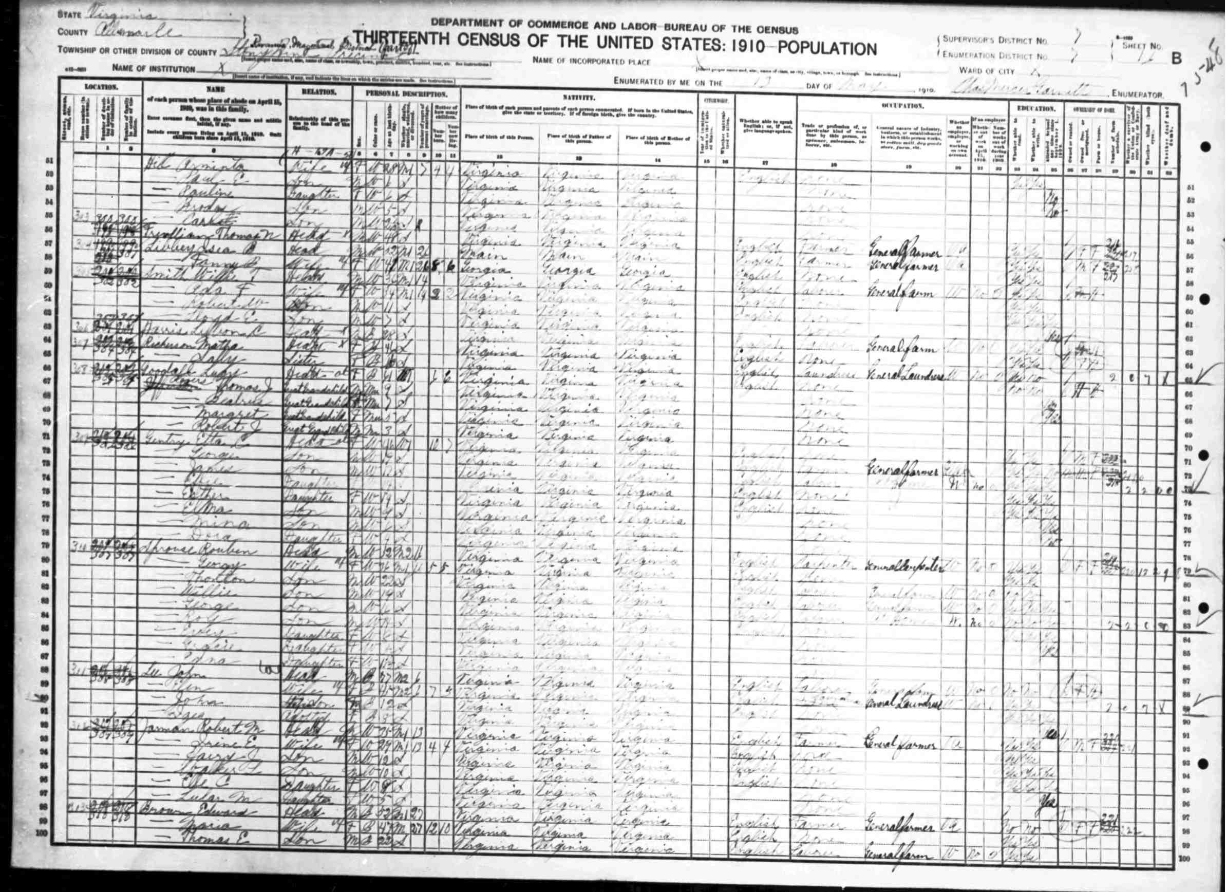 1079. 1940 Virginia Census, Albemarle, Rivanna, ED 2-8, Sht 5B, Image 10 Roll T627.