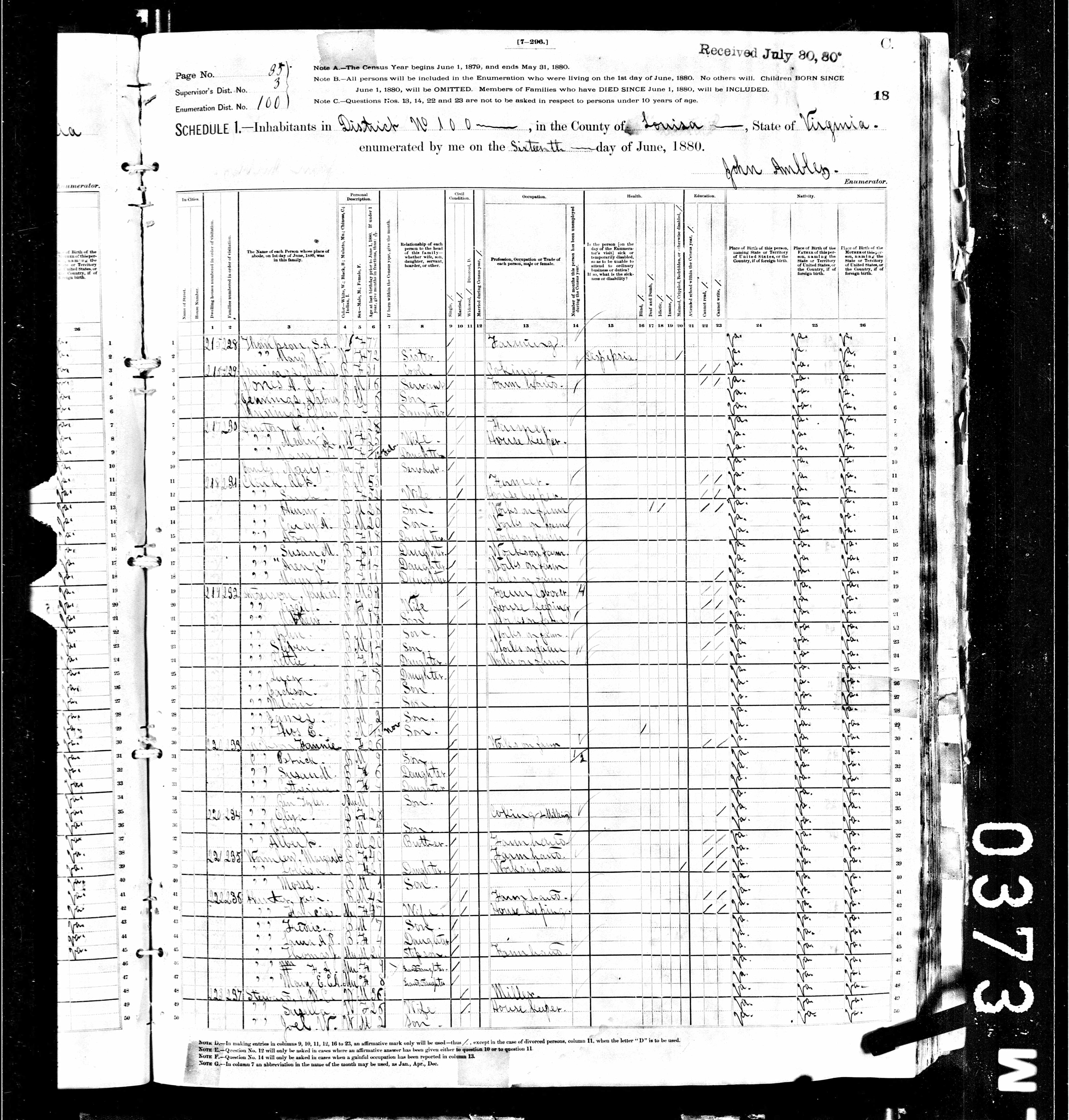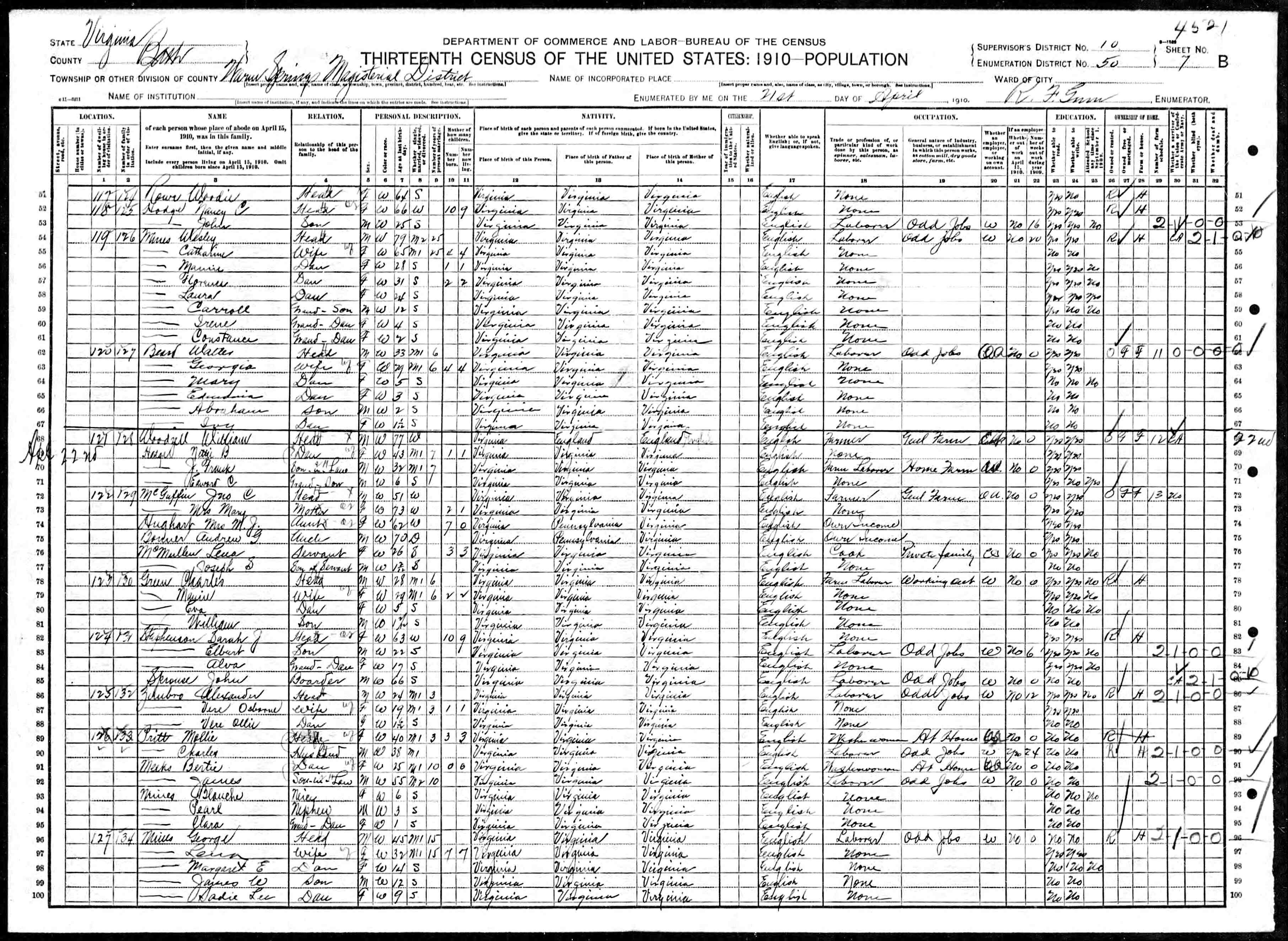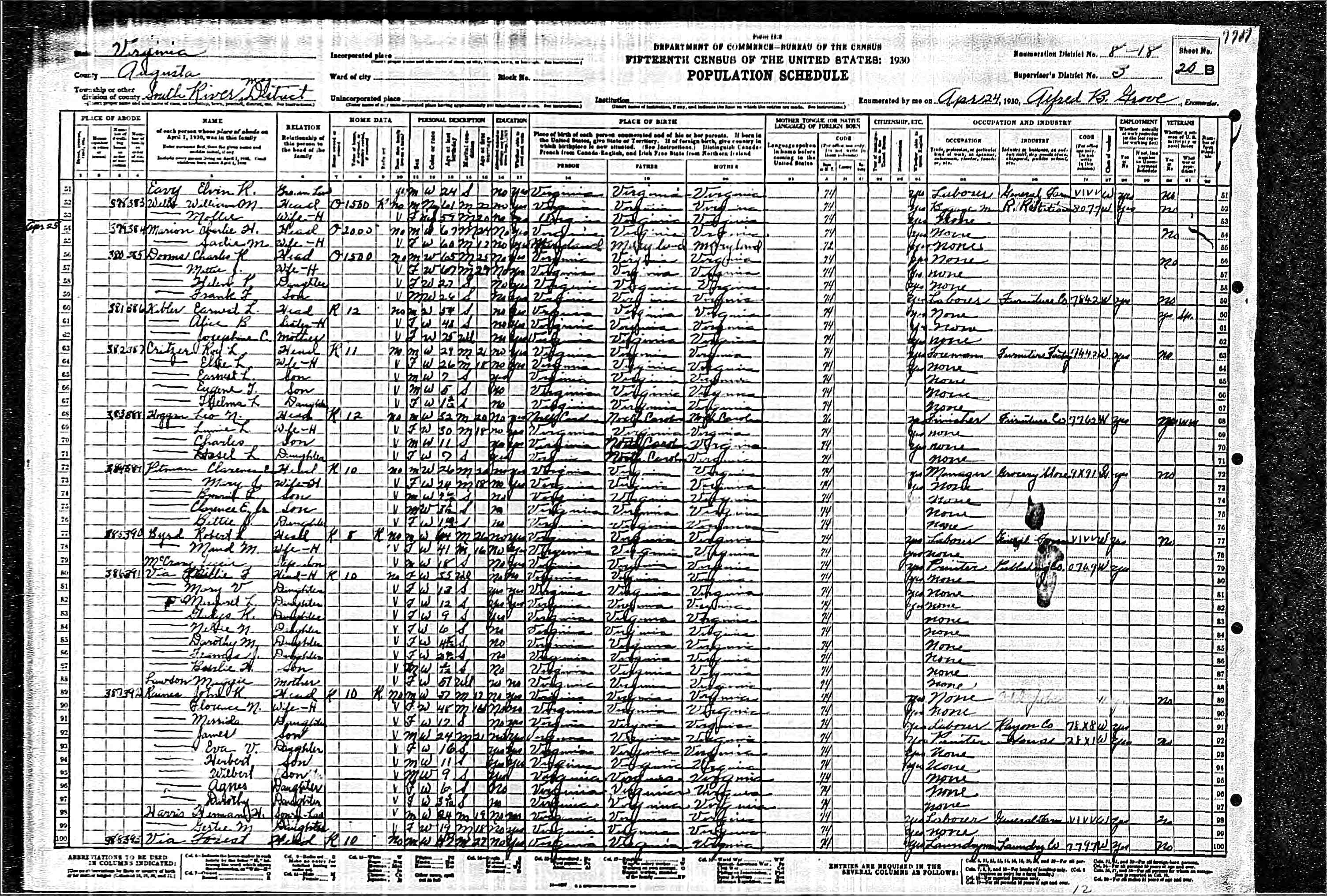 1079. 1940 Virginia Census, Albemarle, Rivanna, ED 2-8, Sht 5B, Image 10 Roll T627.