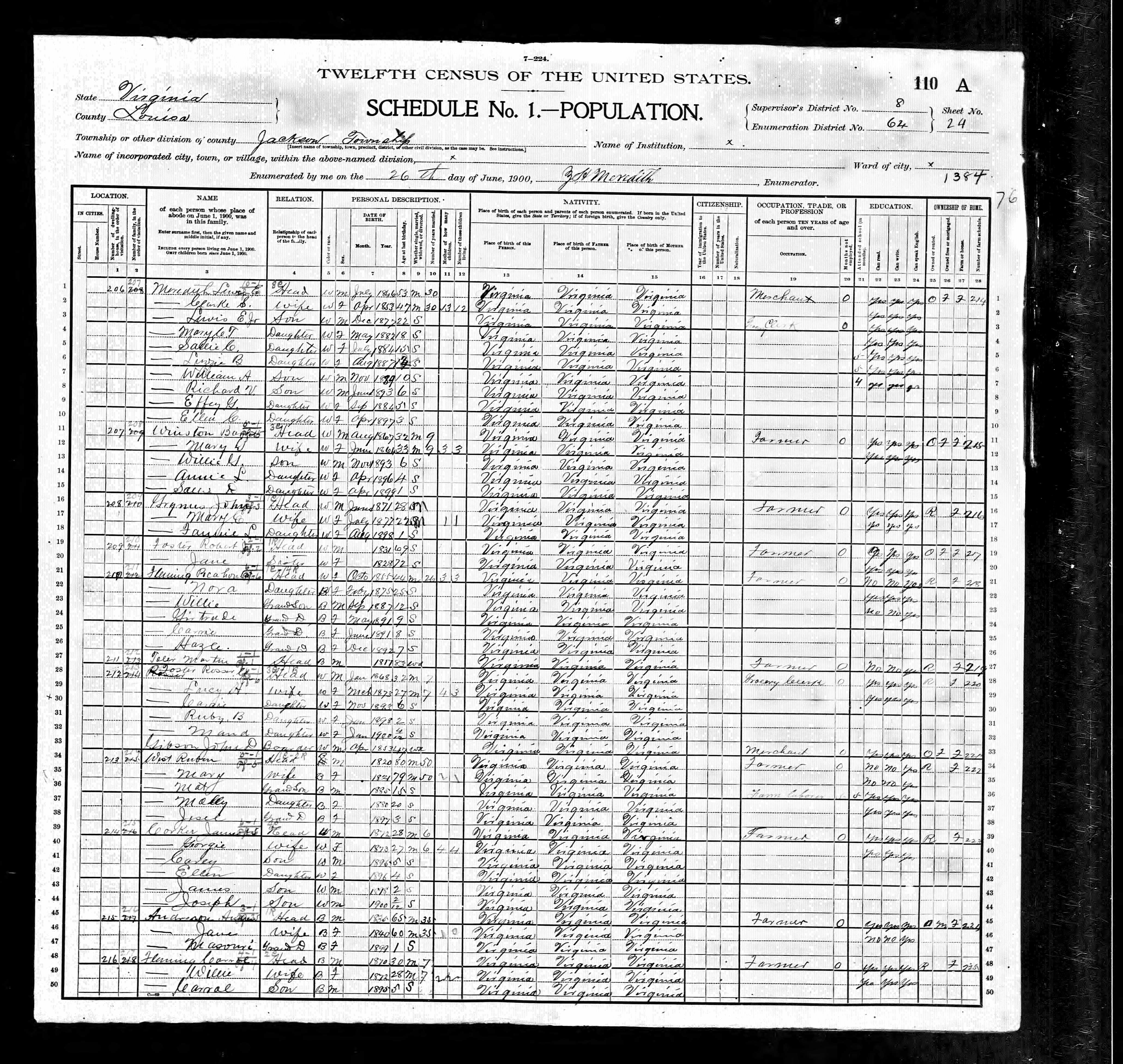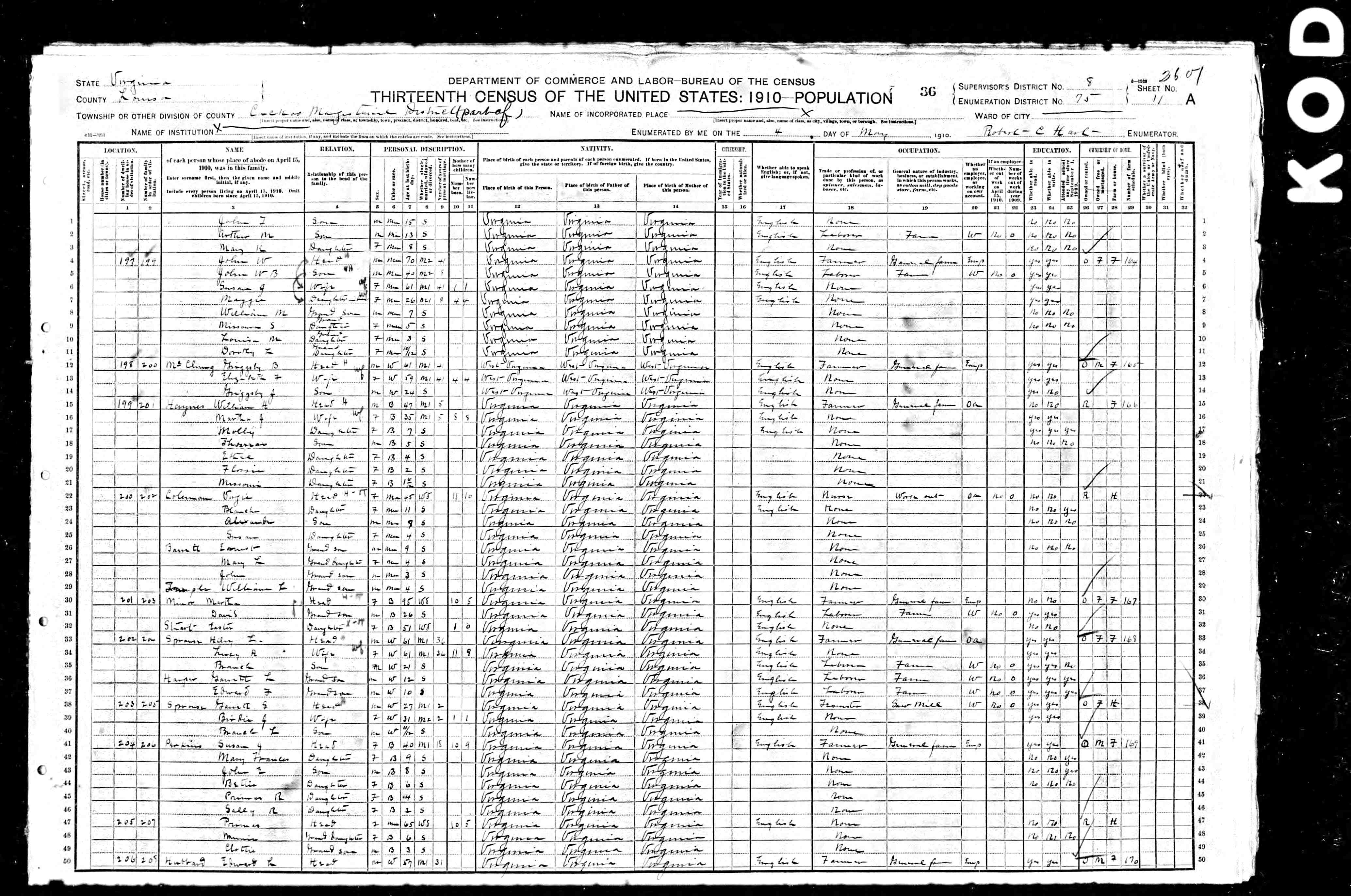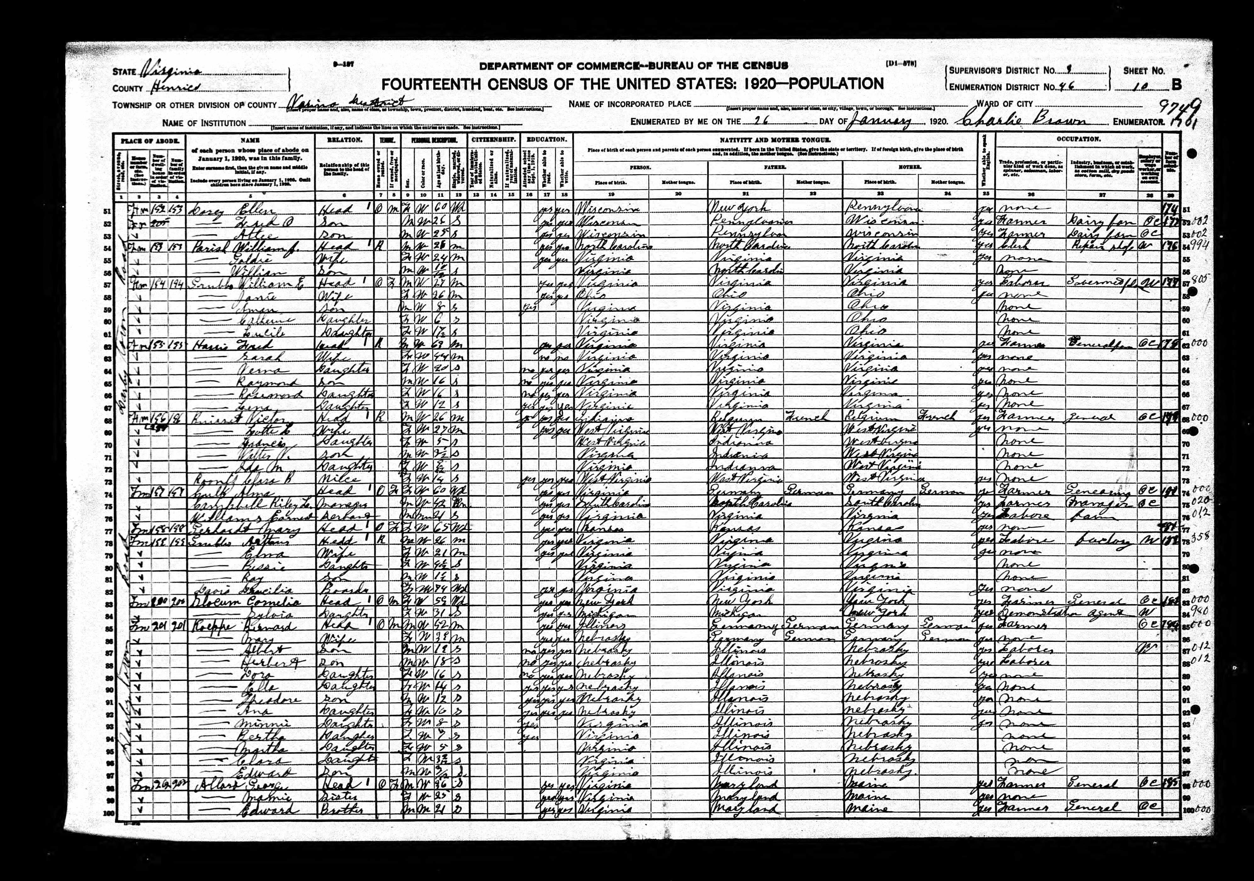 1064. 1930 Virginia Census, Goochland, Byrd, ED 1, Sht 9A, Image 17 Roll T626_2445, p. 9A, ED 1, Image 18.