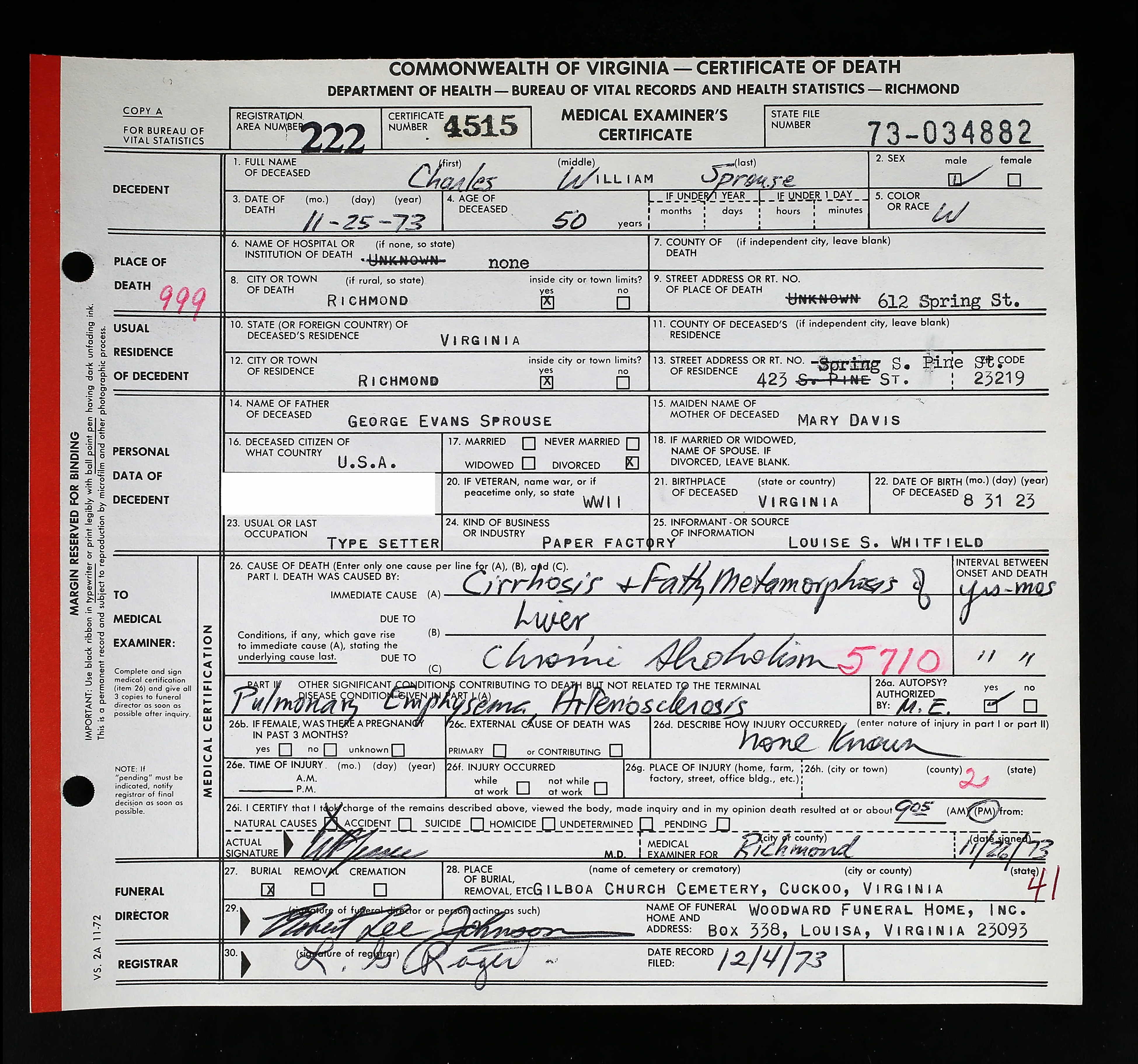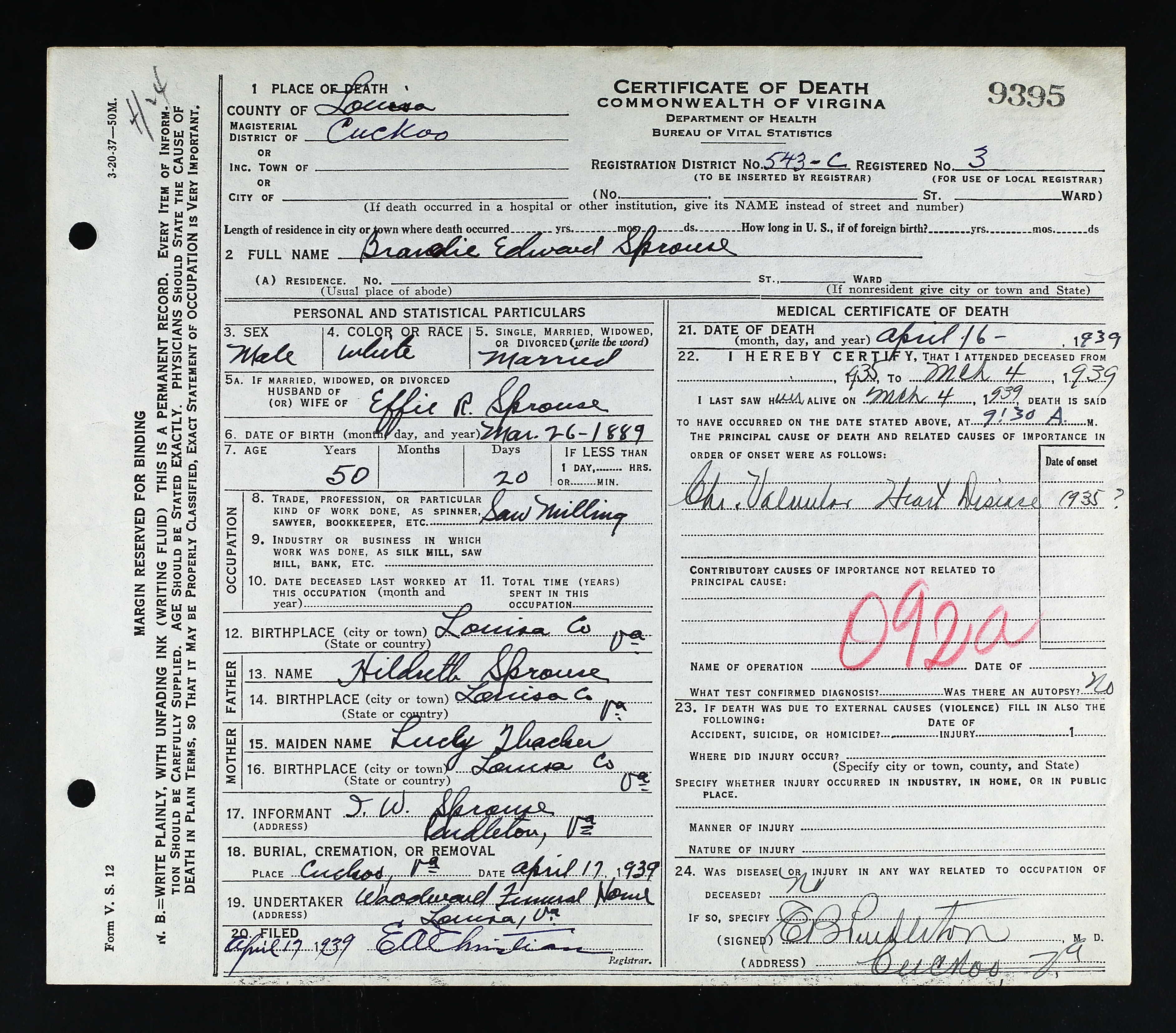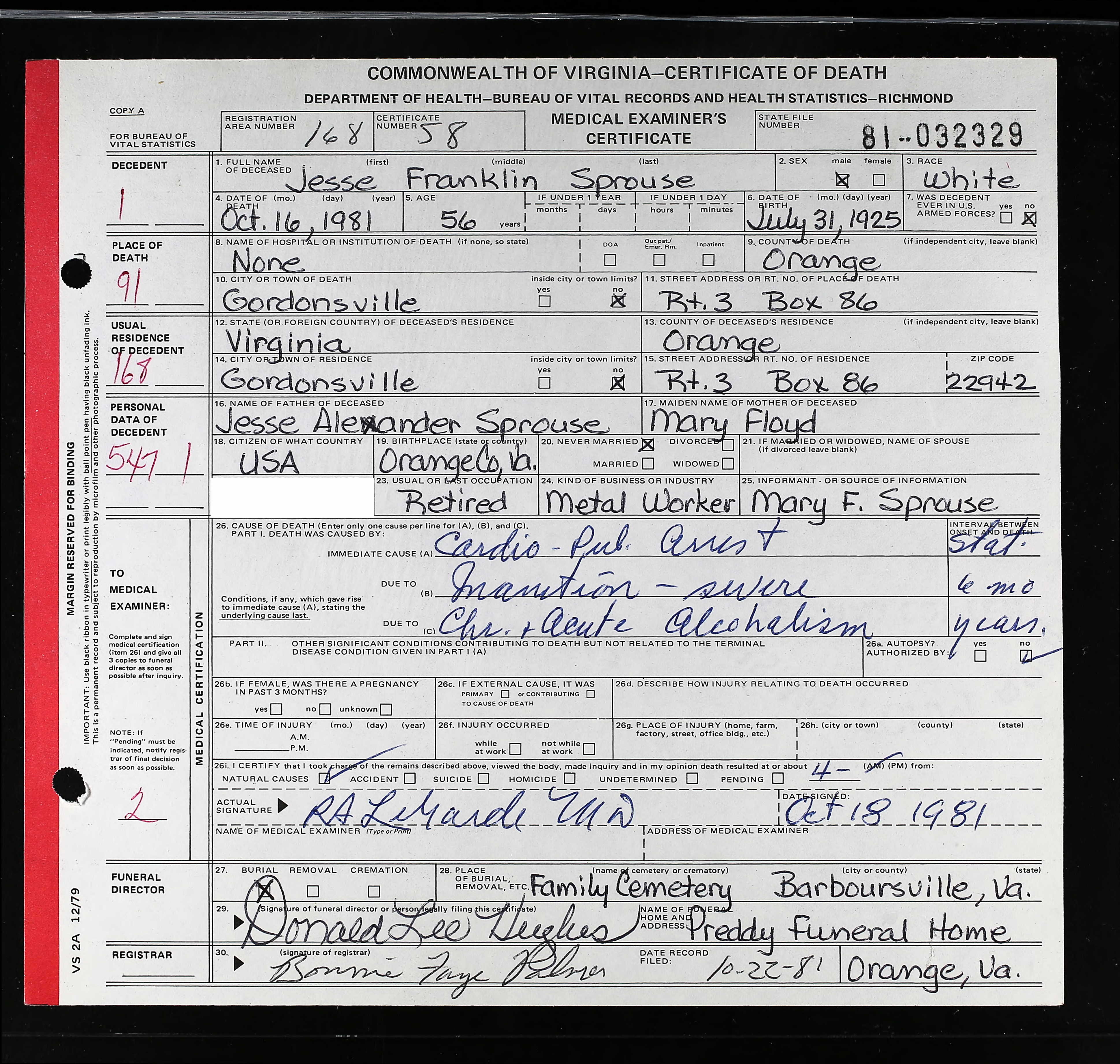 Deceased Name: Warney E. Sprouse