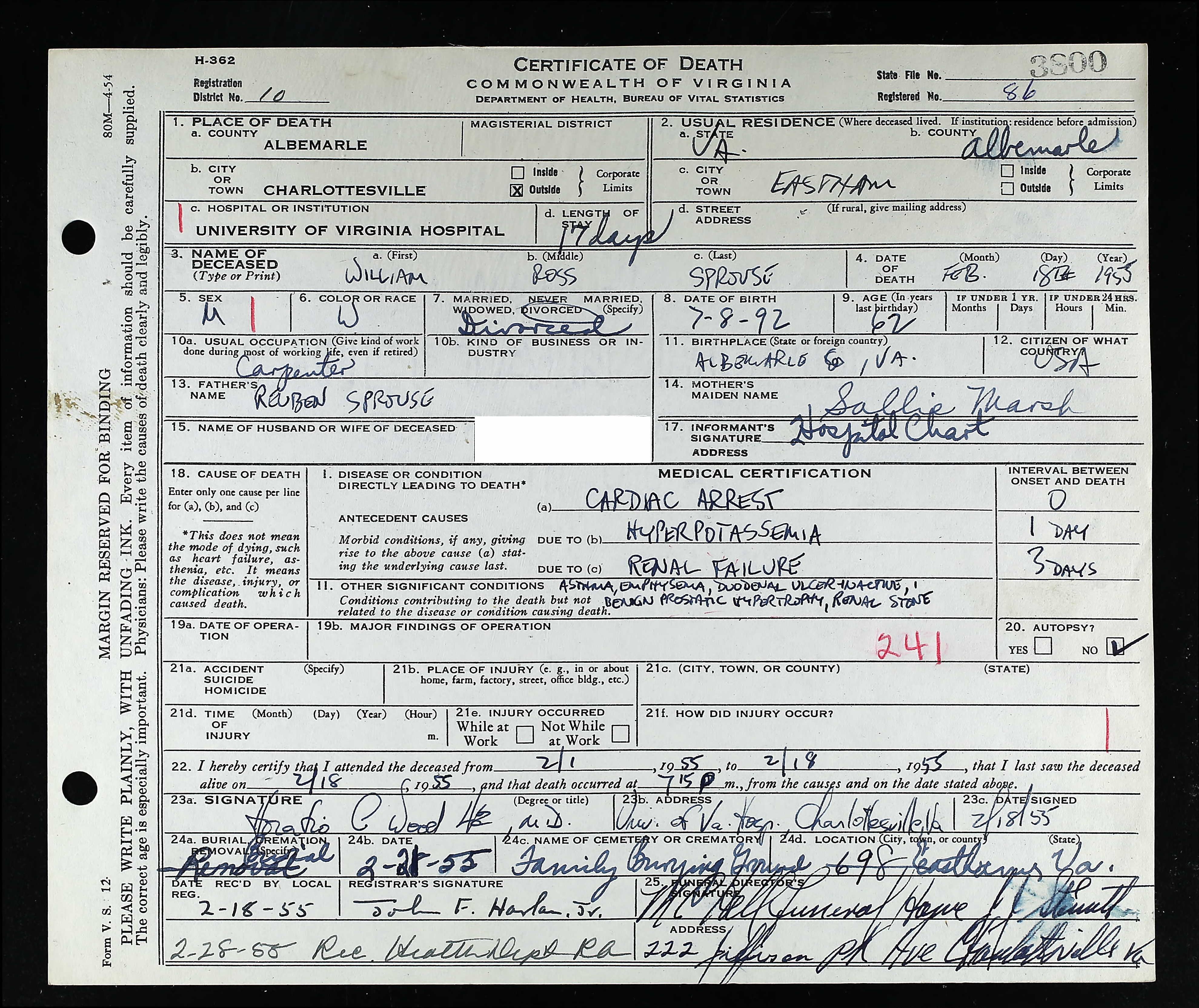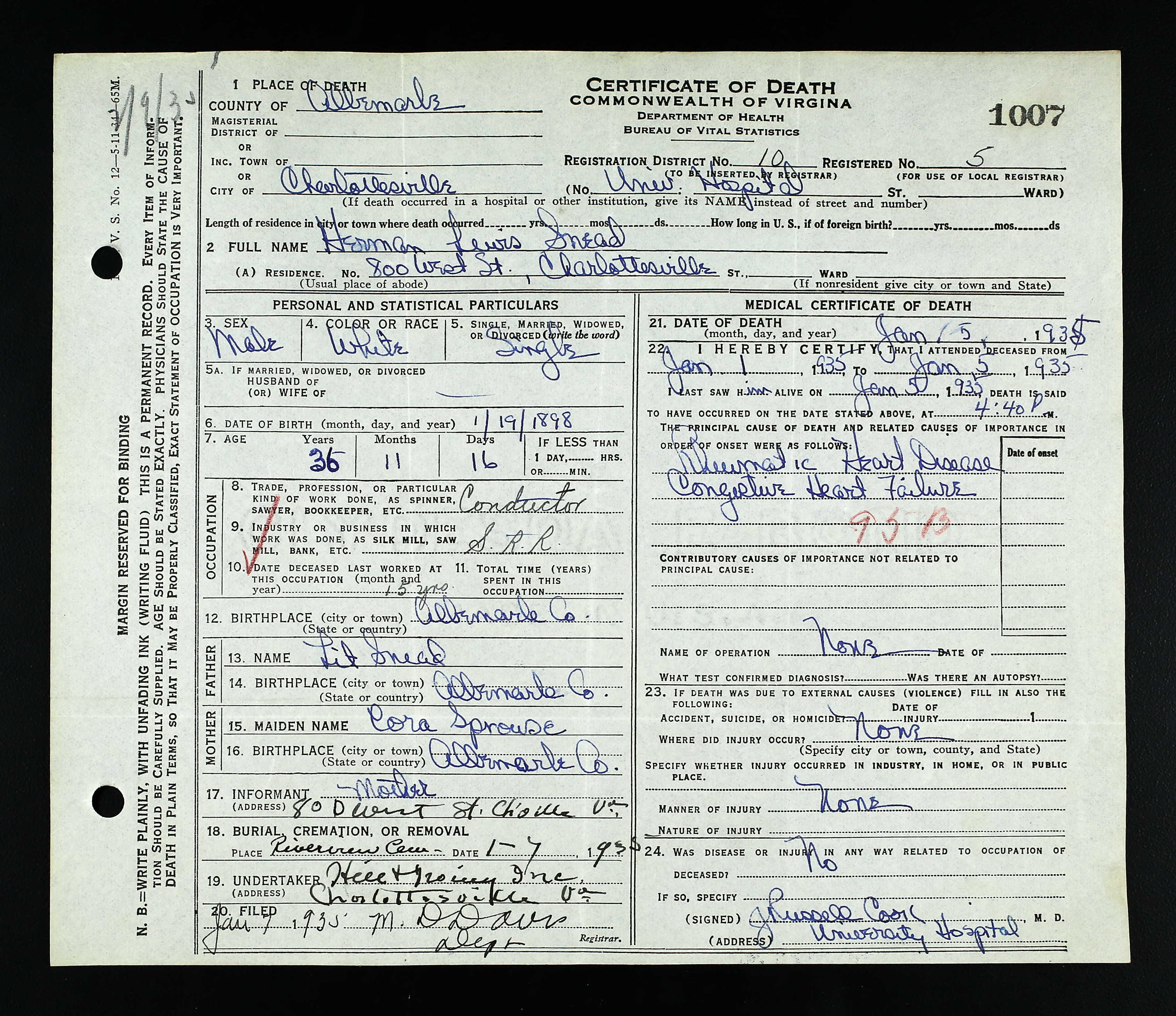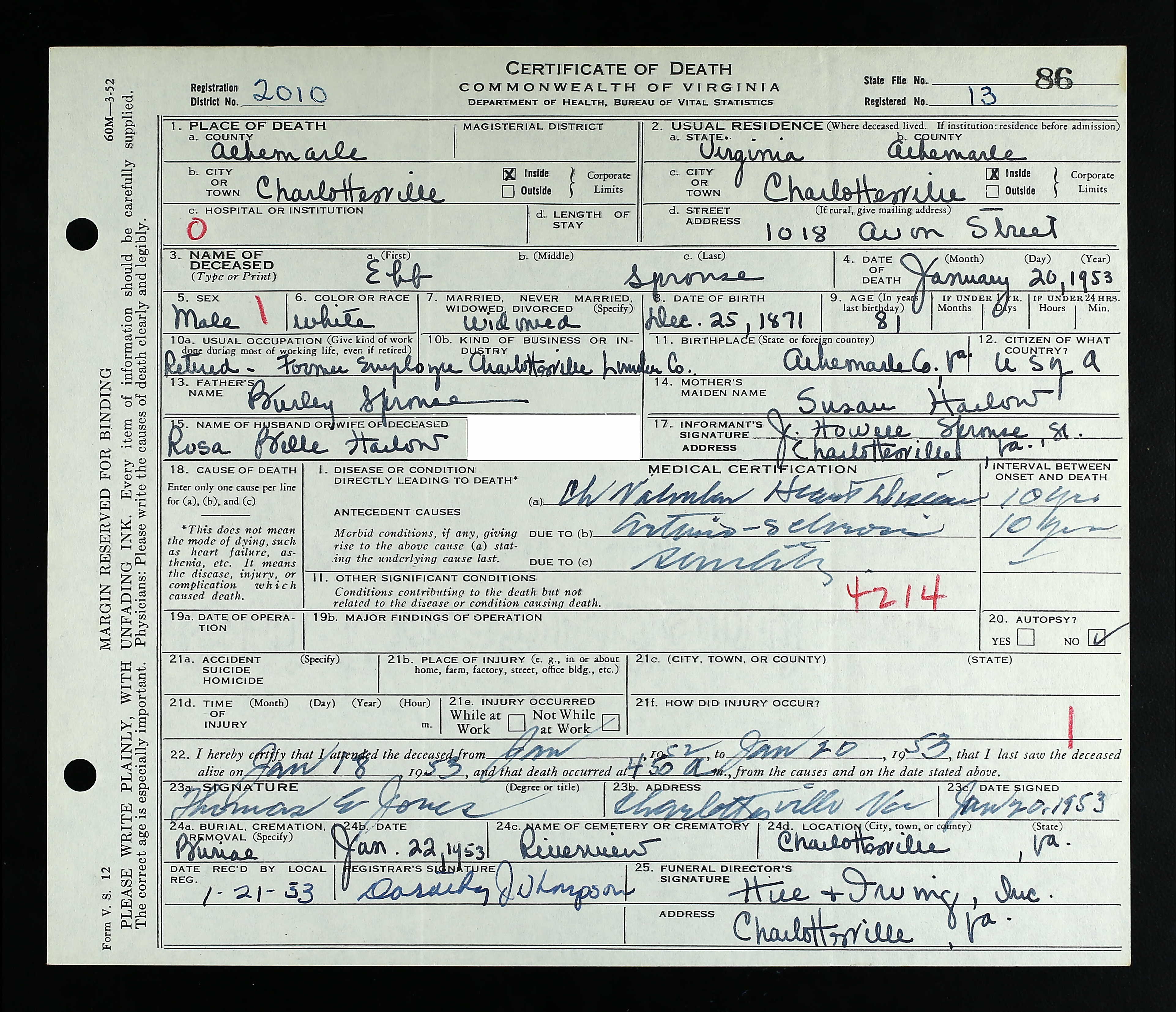 Deceased Name: Warney E. Sprouse