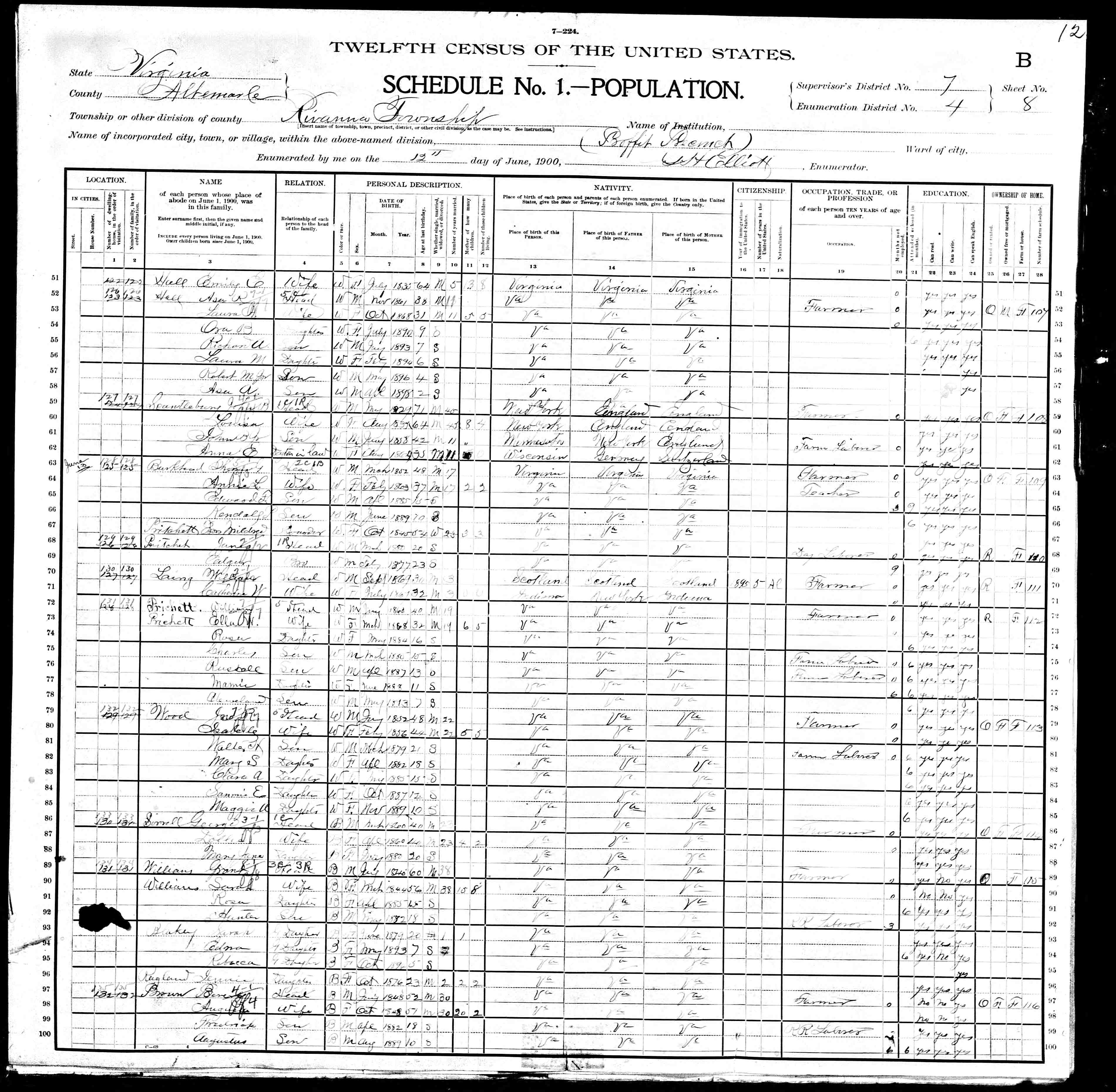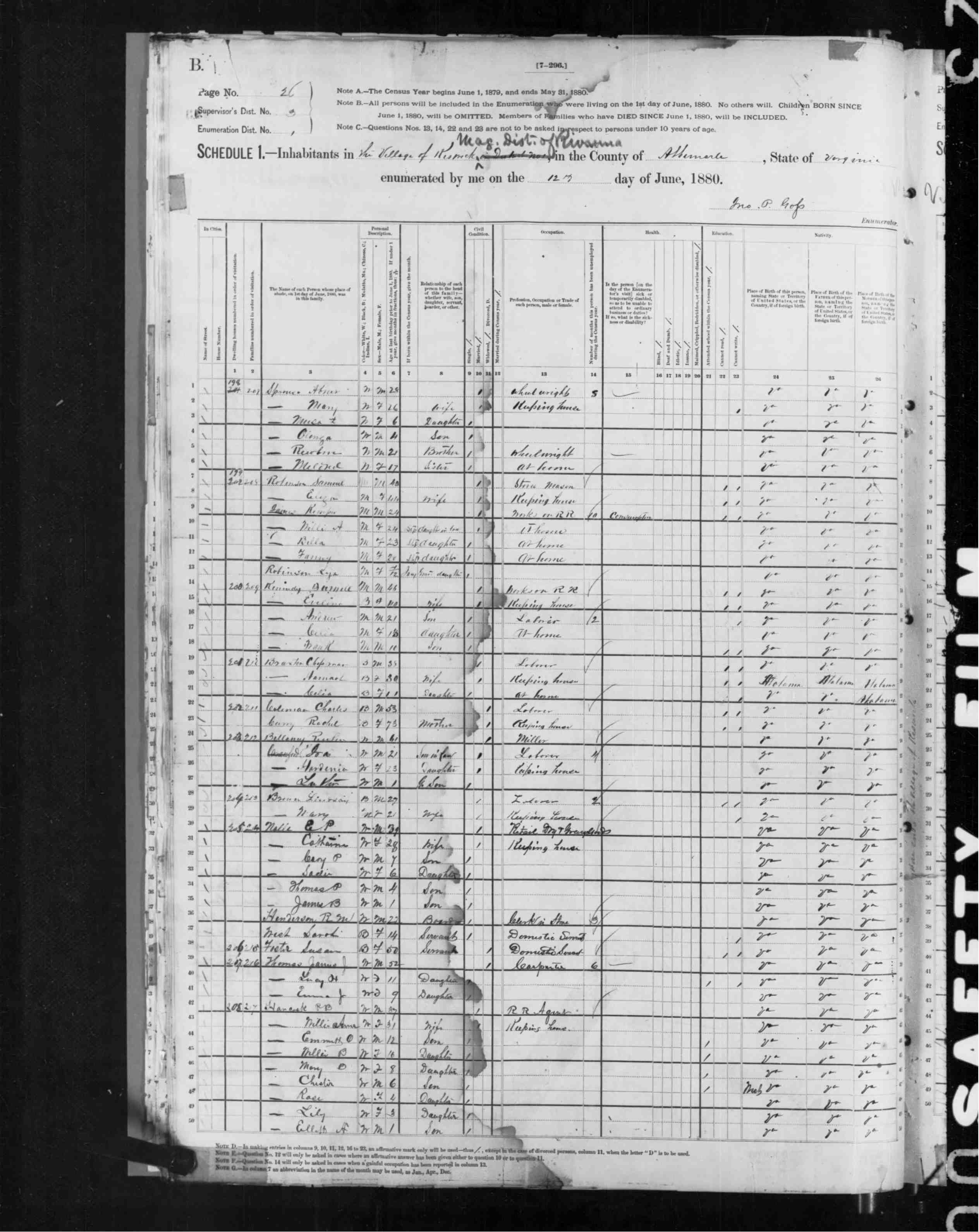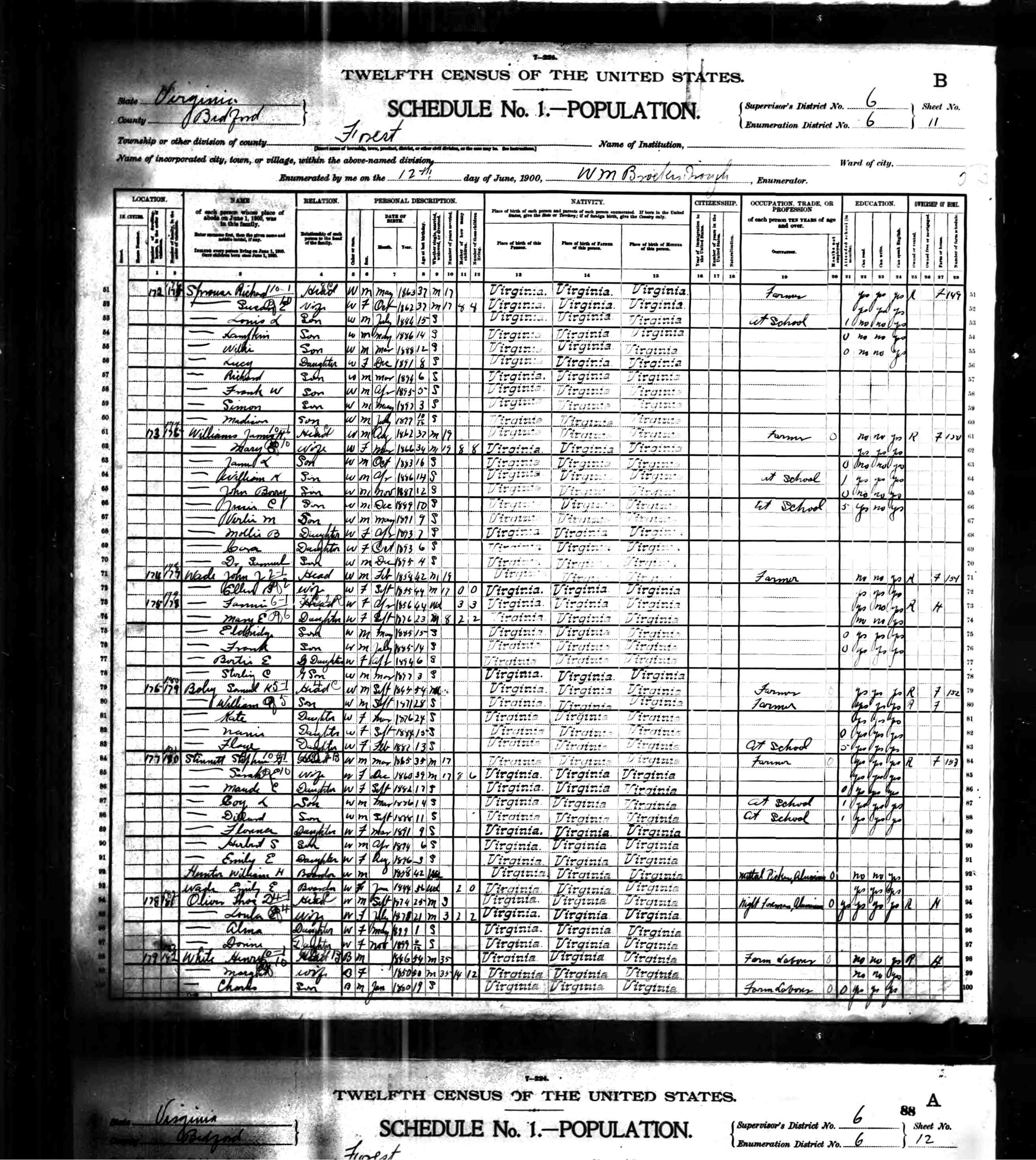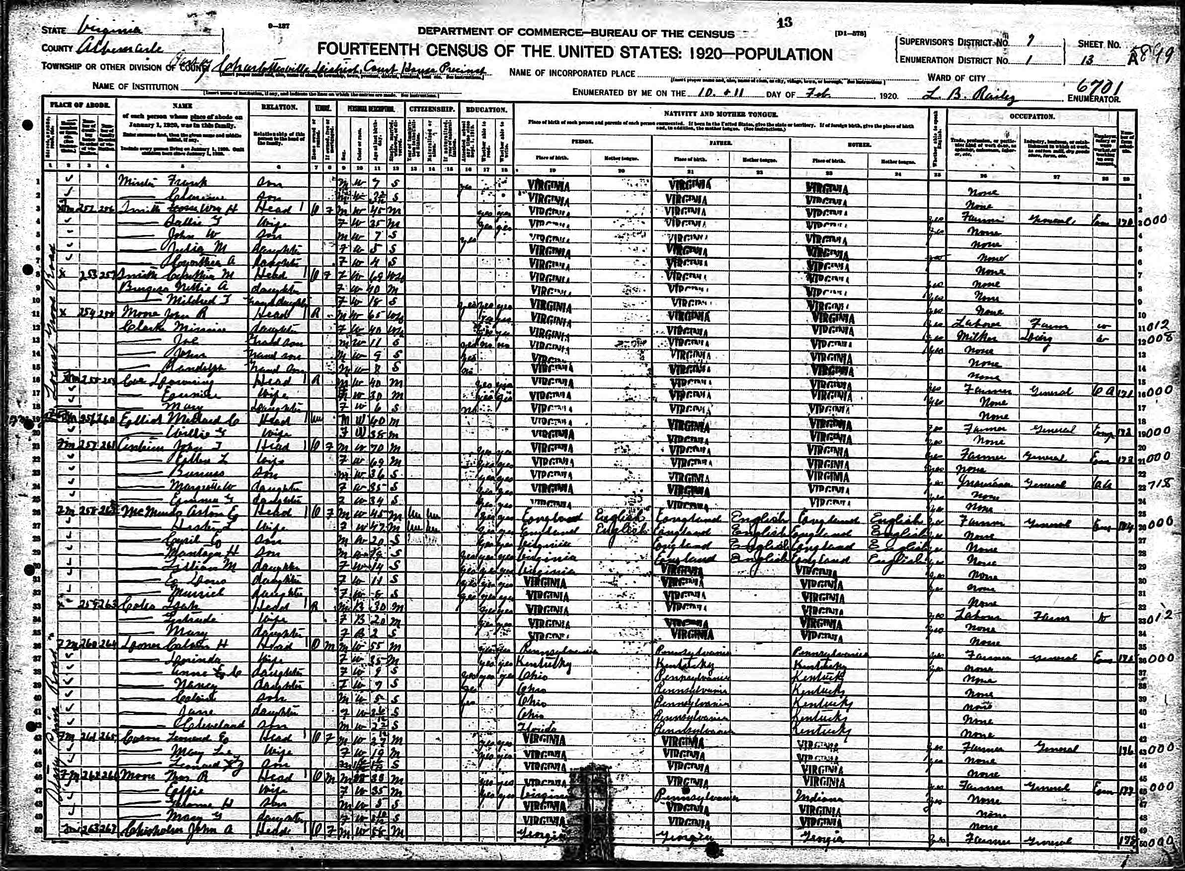 1074. 1940 Virginia Census, Albemarle, Rivanna, ED 2-6, Sht 11B, Image 22 Roll T627.