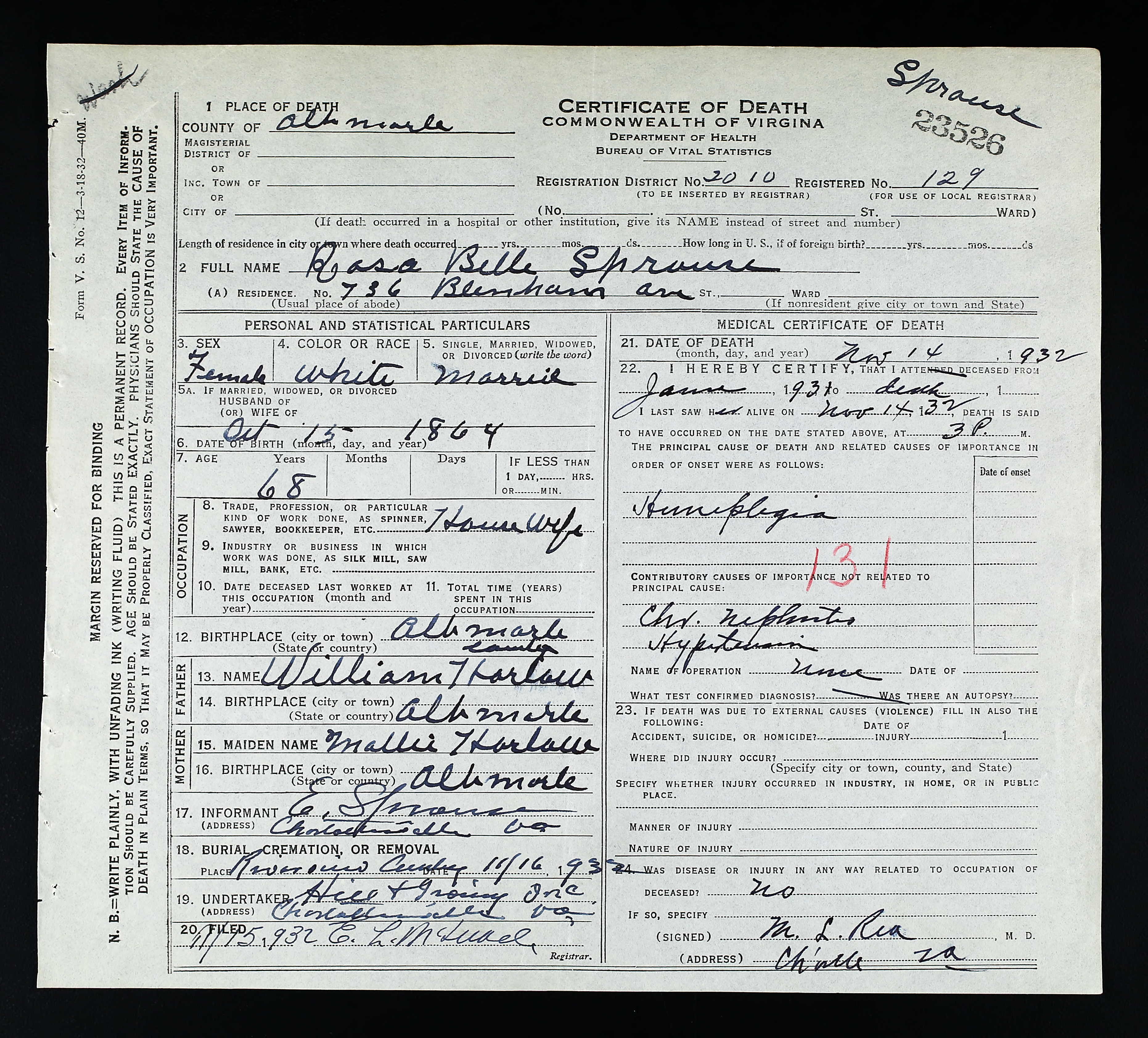 death place: Louisa, Louisa, Virginia