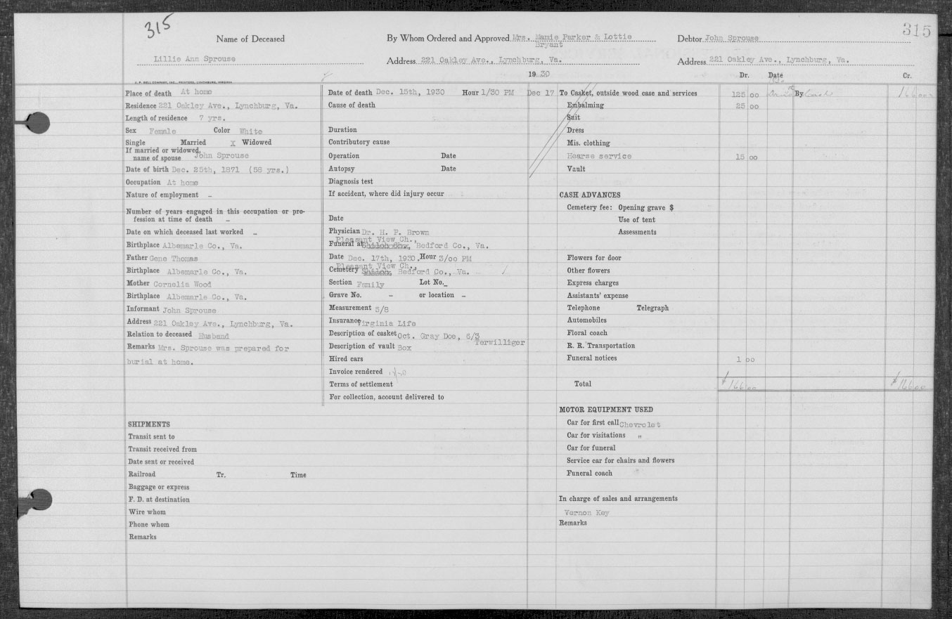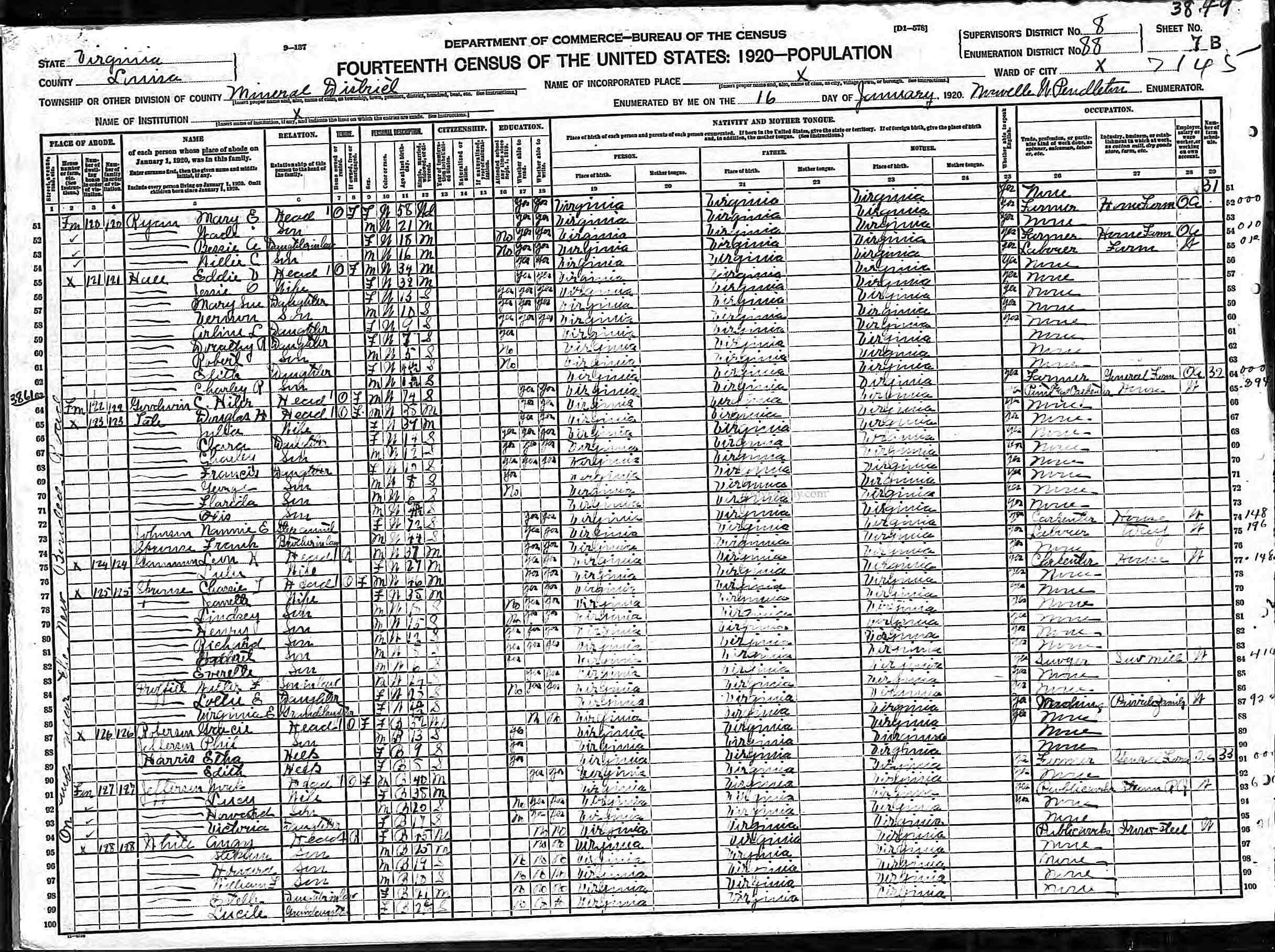 1063. 1930 Virginia Census, Lynchburg, Lynchburg, ED 20, Sht 14B, Image 28 Roll 2468, p. 14B, ED 20, Image 967.