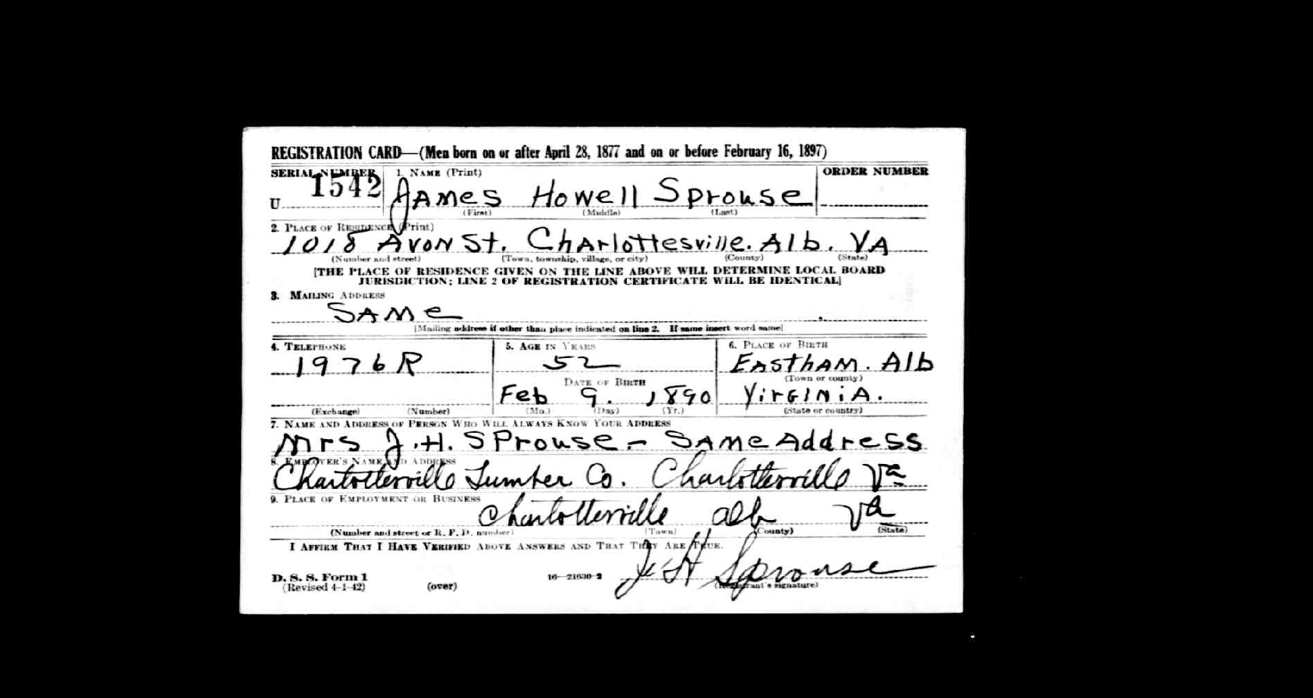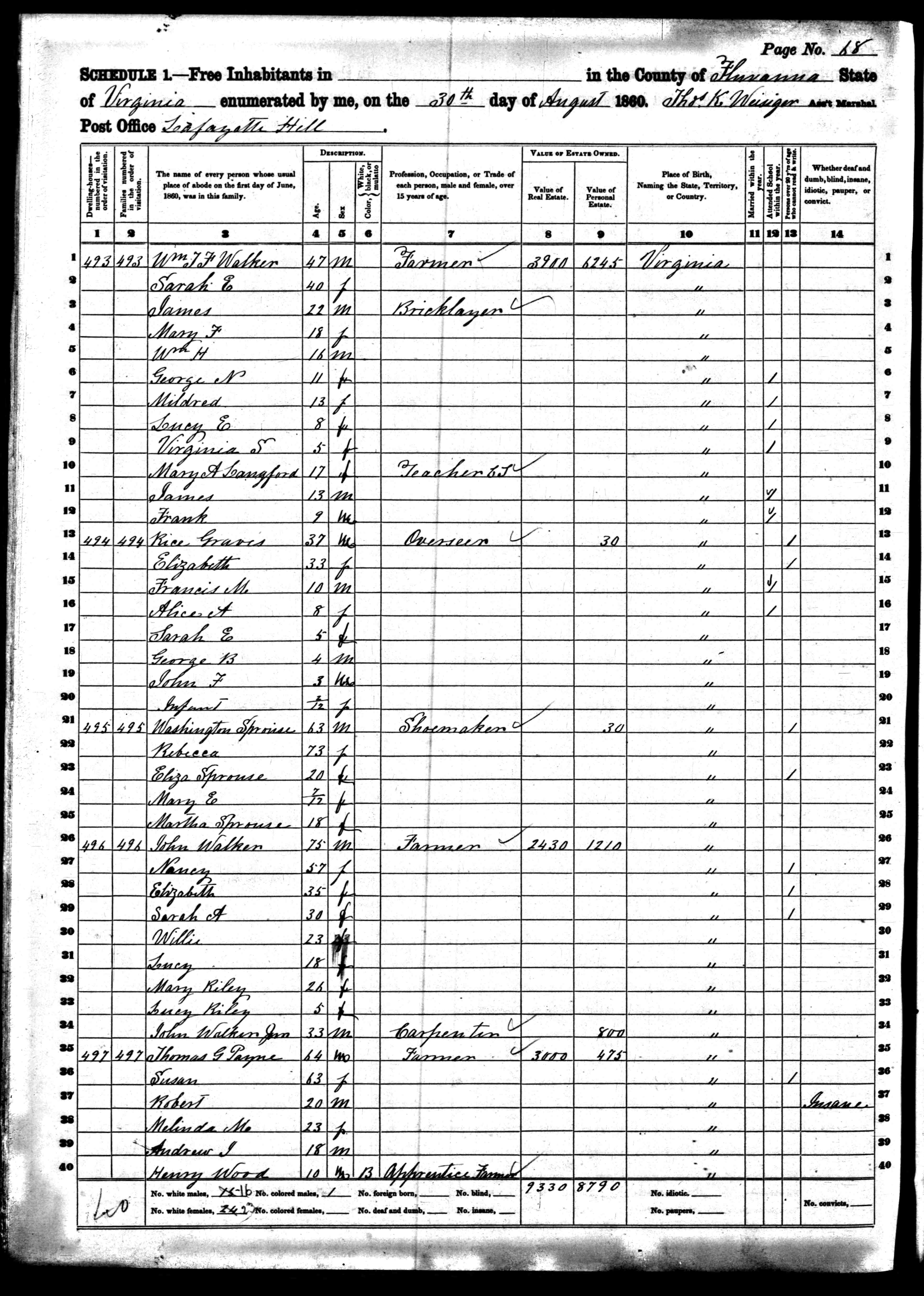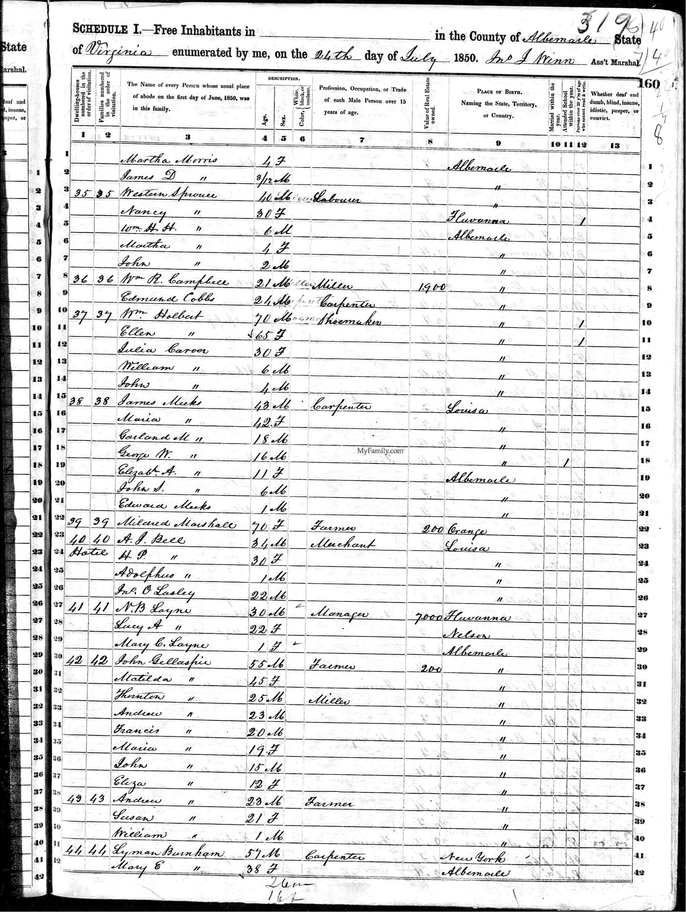 James Sprouse, age 48, trade planter, residence Louisa, born Fluvanna.