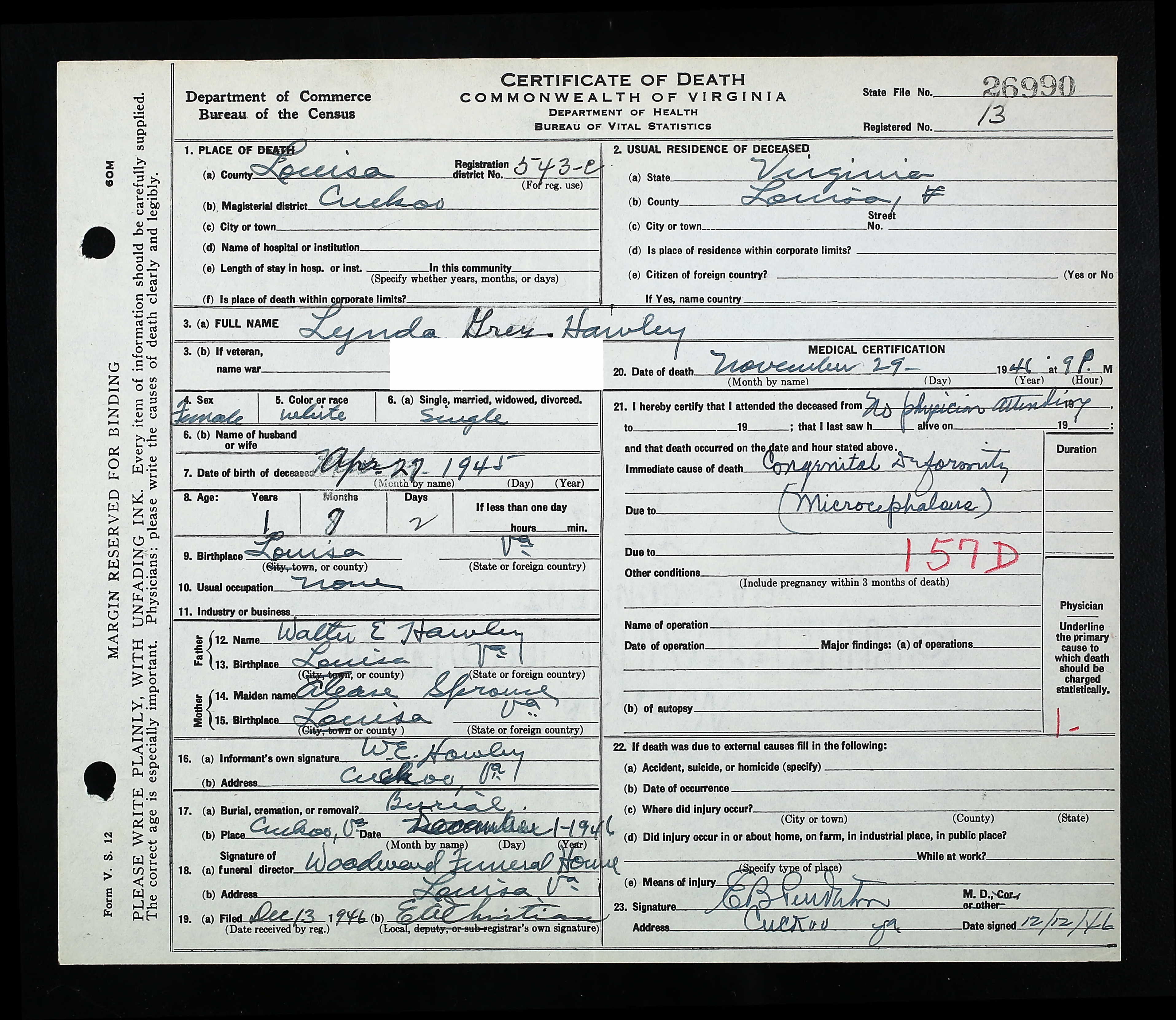 General Notes: Born: