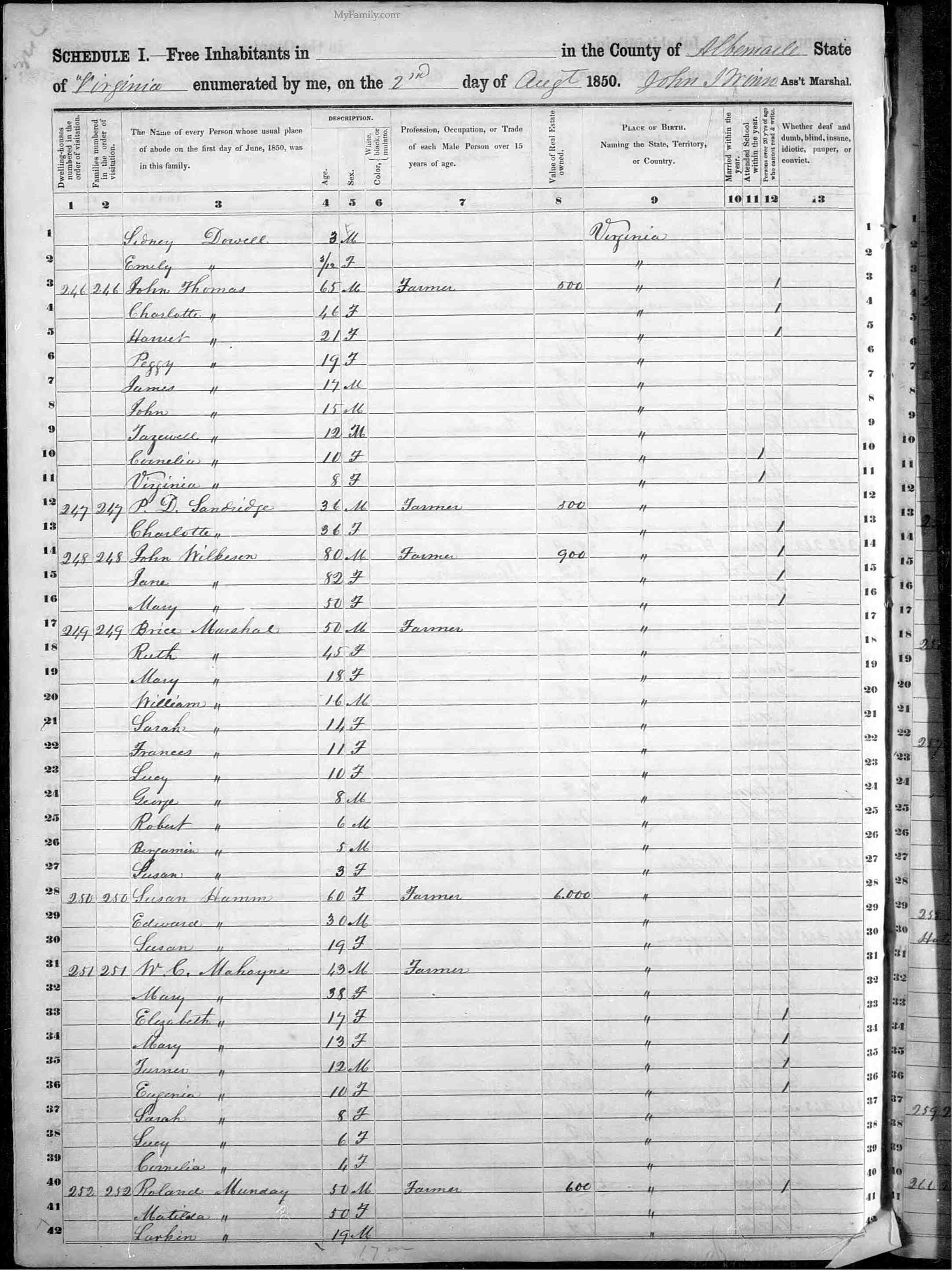 2. Census: John Carver and family, 26 Oct 1850, Louisa County, Virginia, USA. 18