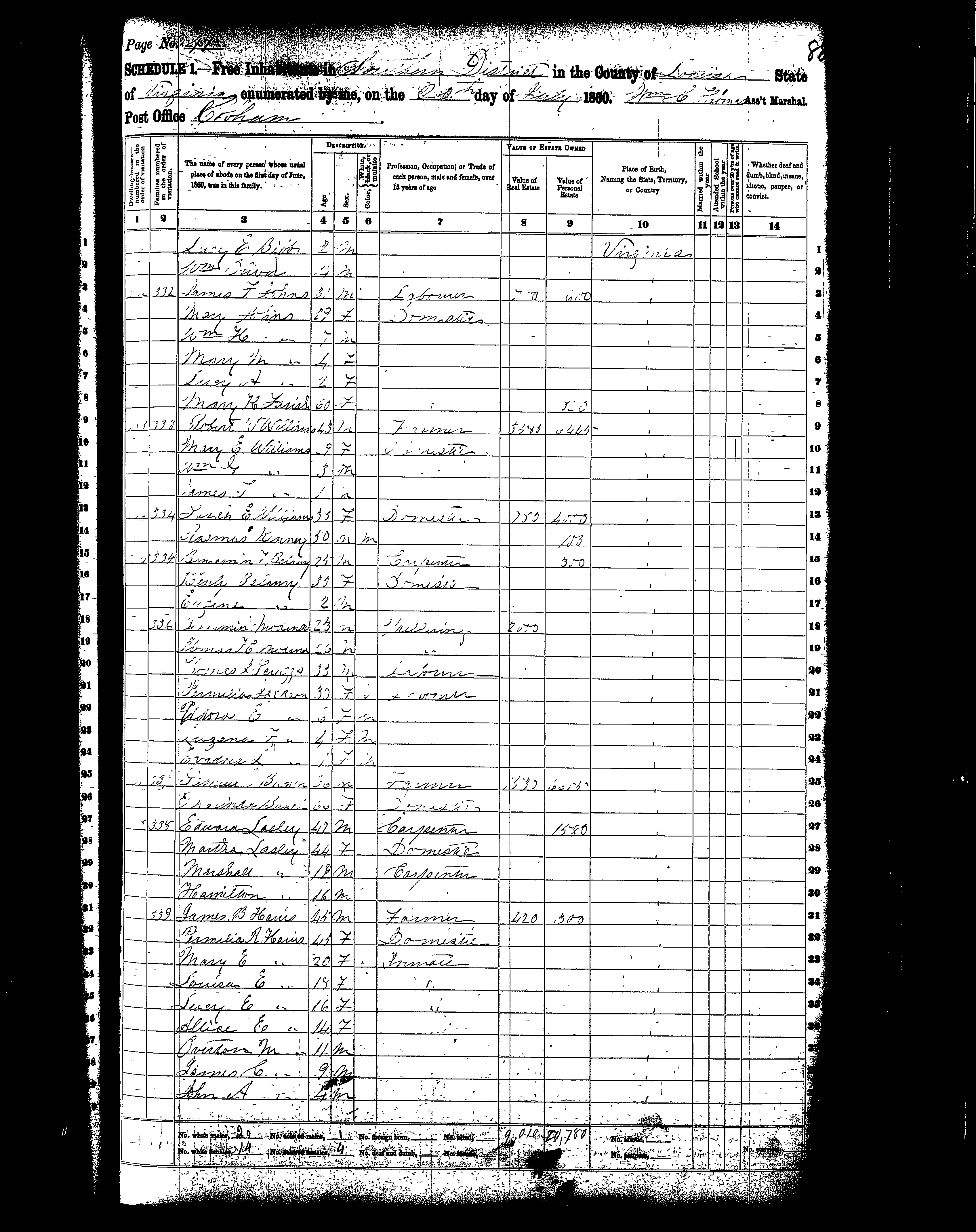 POB: Louisa County, VA