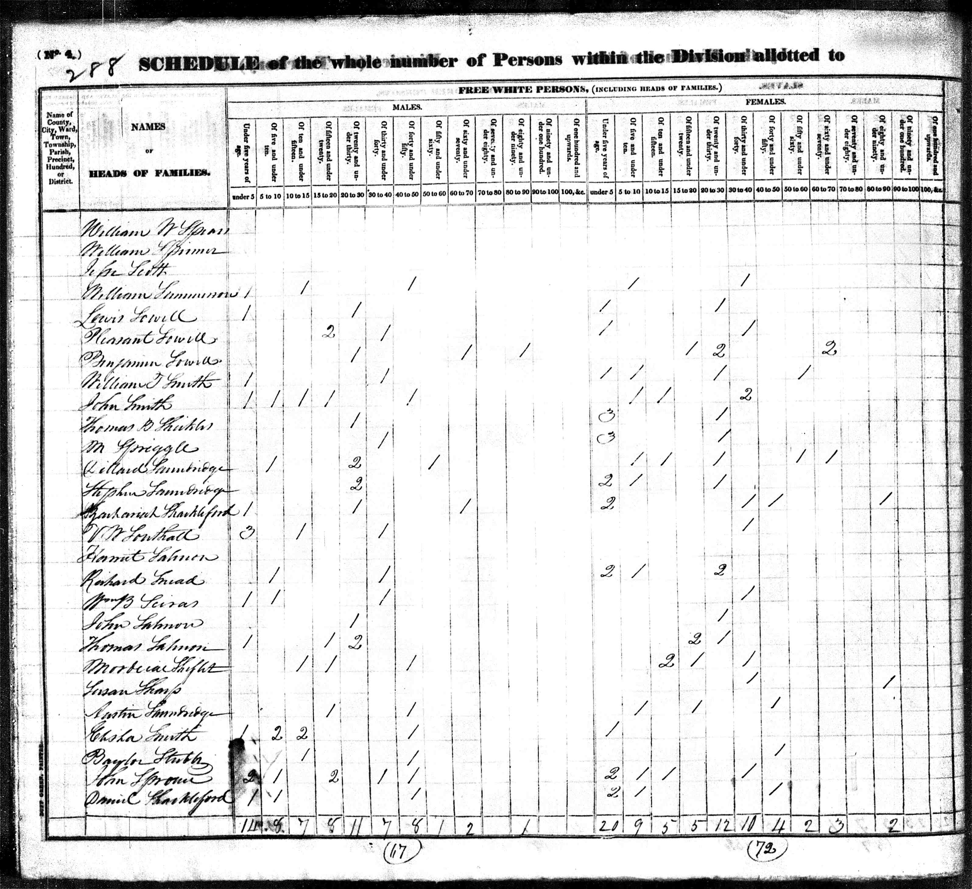 3. Census: John Sprouce and family, 1 Jun 1830, Albemarle County, Virginia, USA. 37