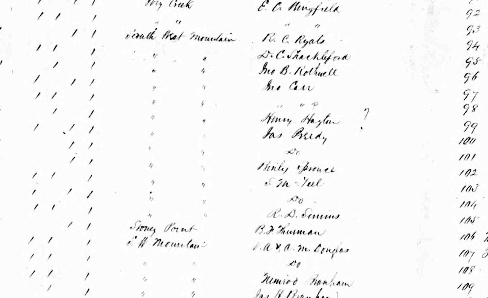 This indenture made this 28th day of September 1852 between John R. Jones appointed by the County Court of Albemarle to sell a track of land belonging to the Estate of Susan Thomas dec'd. of the one part and GIDEON SPROUSE of the other part. All of the County of the State of Virginia witnesseth that the said John R. Jones as _____ aforesaid for and in consideration of the sum of two hundred and fifty dollars to him in hand paid by the said Gideon Sprouse, the receipt whereof is hereby a knowledge have bargained sold to the said Gideon Sprouse his heirs and a certain tract of land lying and being in the county of Albemarle on the South West Mountain adjoining the land of John Rothwell, John Carr, Reuben Carver and others and supposed to be about one hundred acres, more or less. To have and to hold the said tract of land with all its appurtenances, thereunto belonging unto here the said Gideon Sprouse his heirs and assigns forever. And the said John R. Jones as commissioner an aforced will warrant and forever defend from the claim or claims of heirs the said Jones as commissioner afore and in witness whereof the said commissioner hath hereunto set his hand and seal the day and date above written.