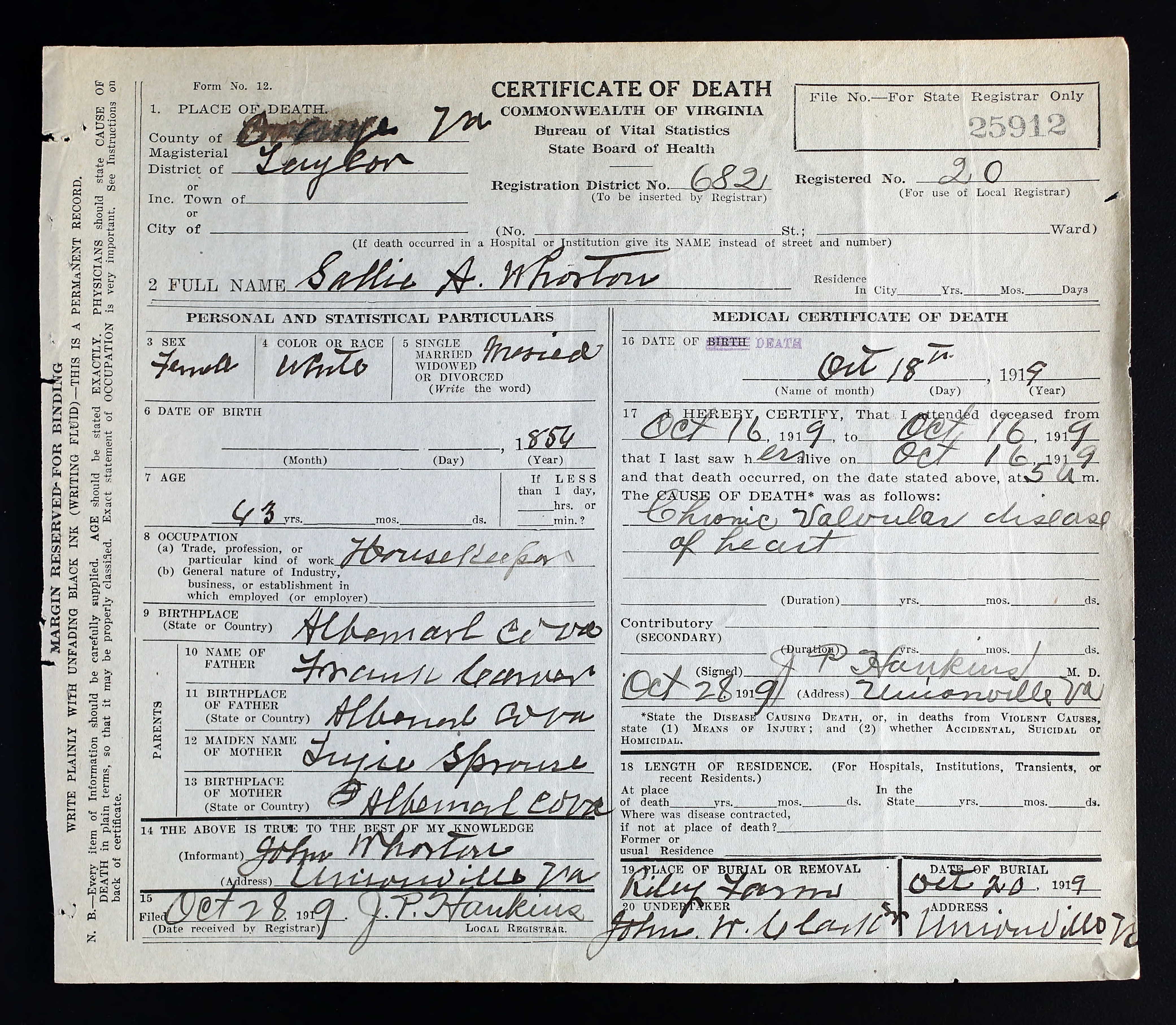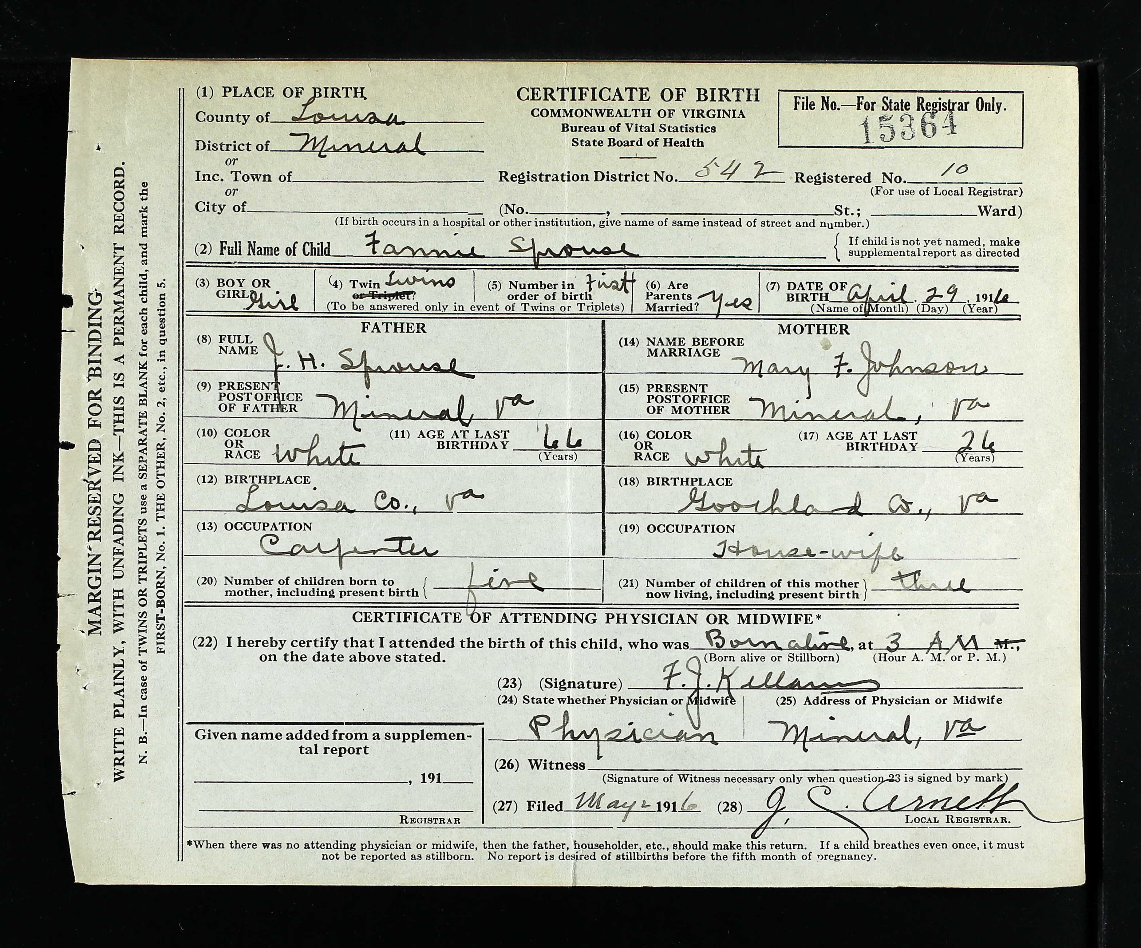 1. Alt. Birth: 26 Jul 1877, Augusta County, Virginia, USA.