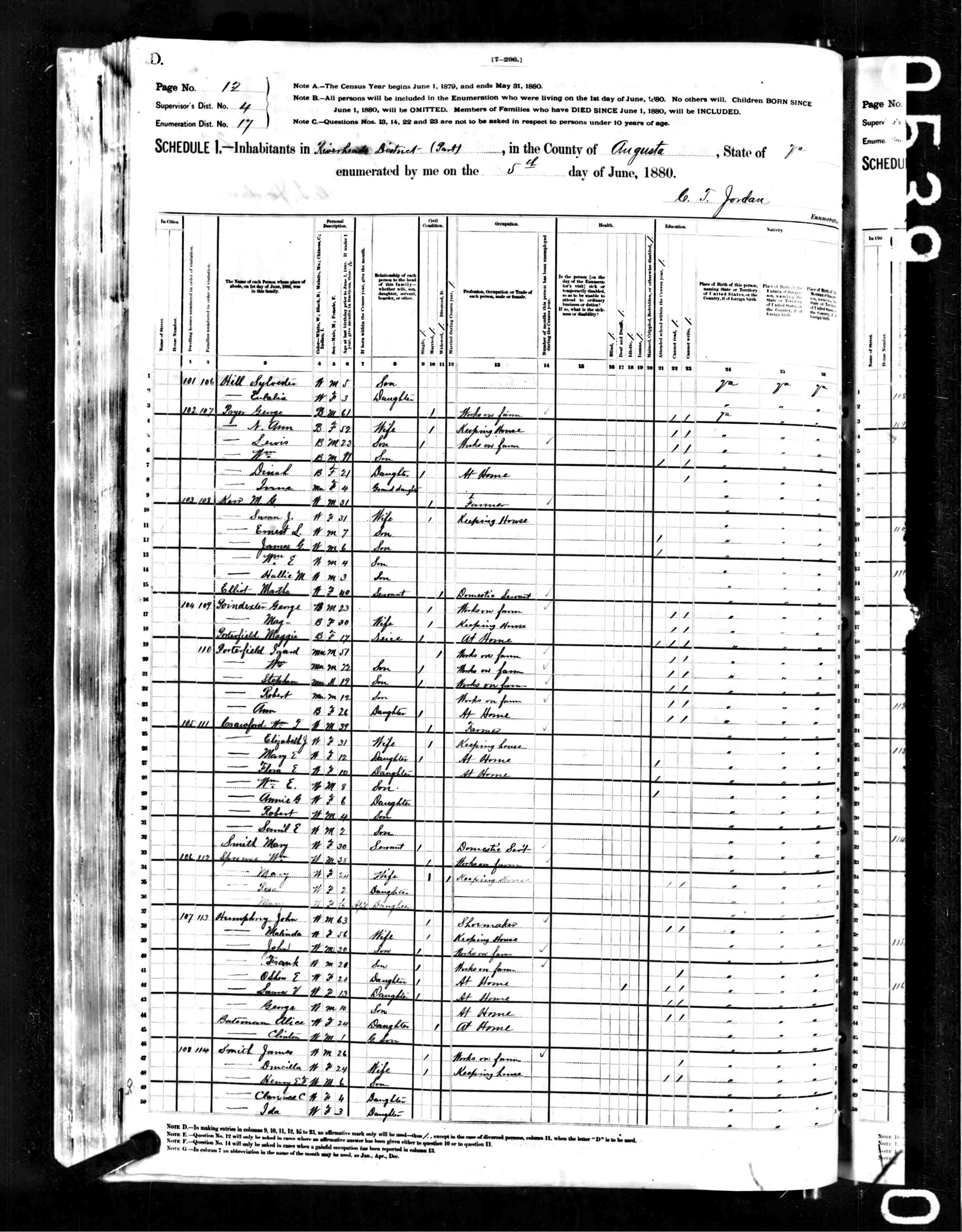 1. Census: John Thomas Sprouse and family, 7 Jun 1880, Pastures, Augusta County, Virginia, USA. 218