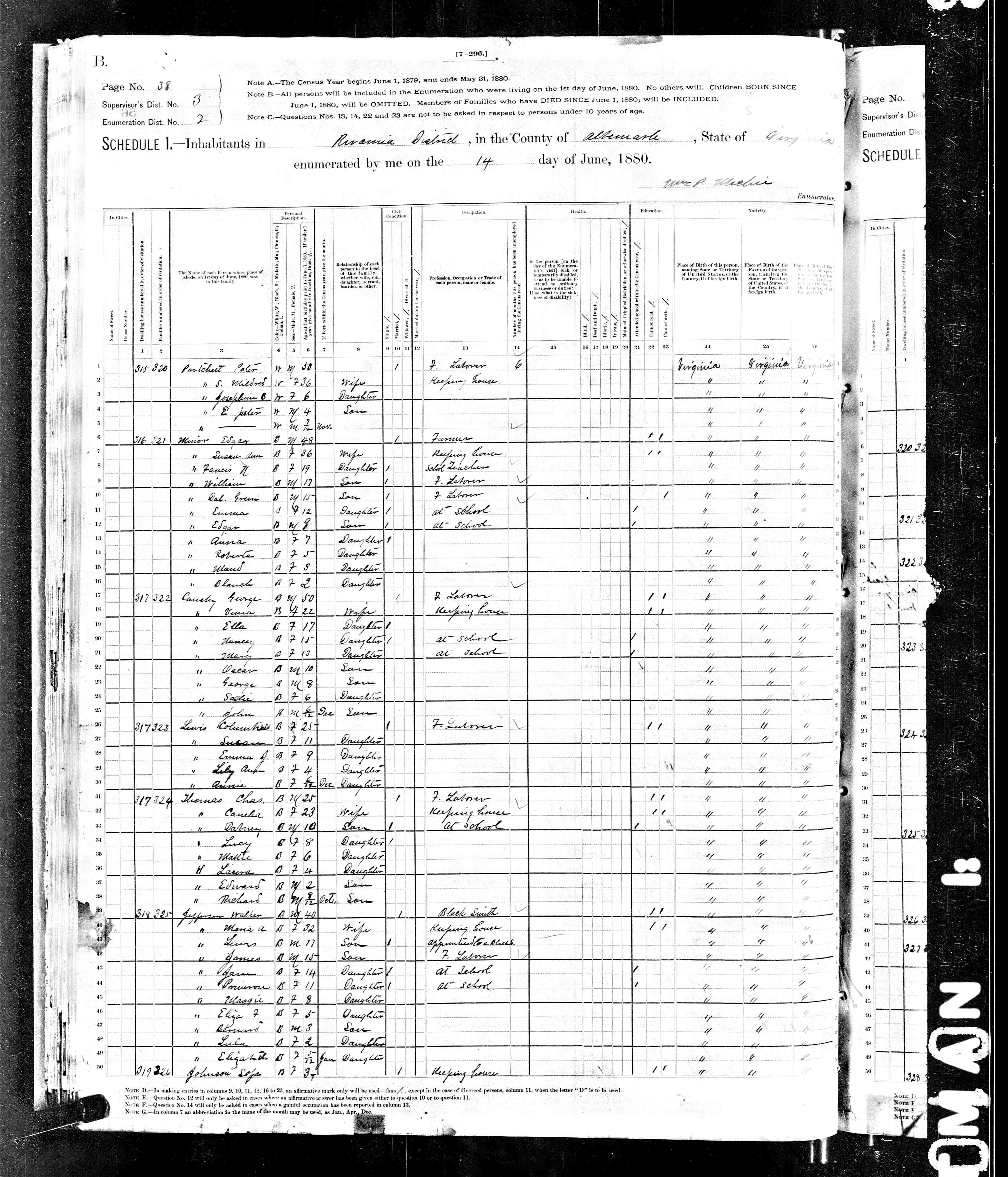 876. 1920 Virginia Census, Albemarle, Rivanna, ED 8, Sht 6A, Image 11 Roll T625_1878, p. 6A, ED 8, Image 200.