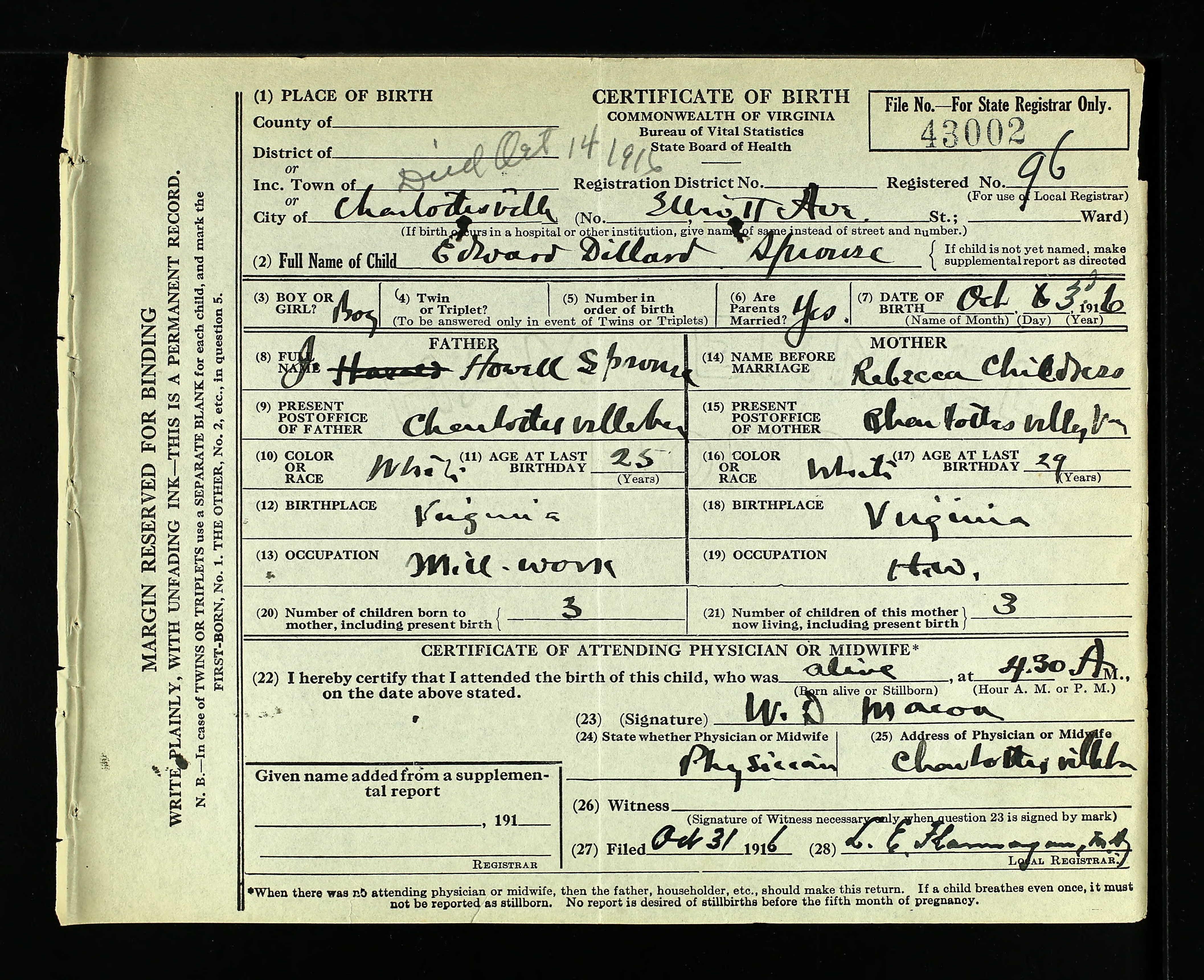 1. Alt. Birth: 2 May 1877, Alleghany County, Virginia, USA.